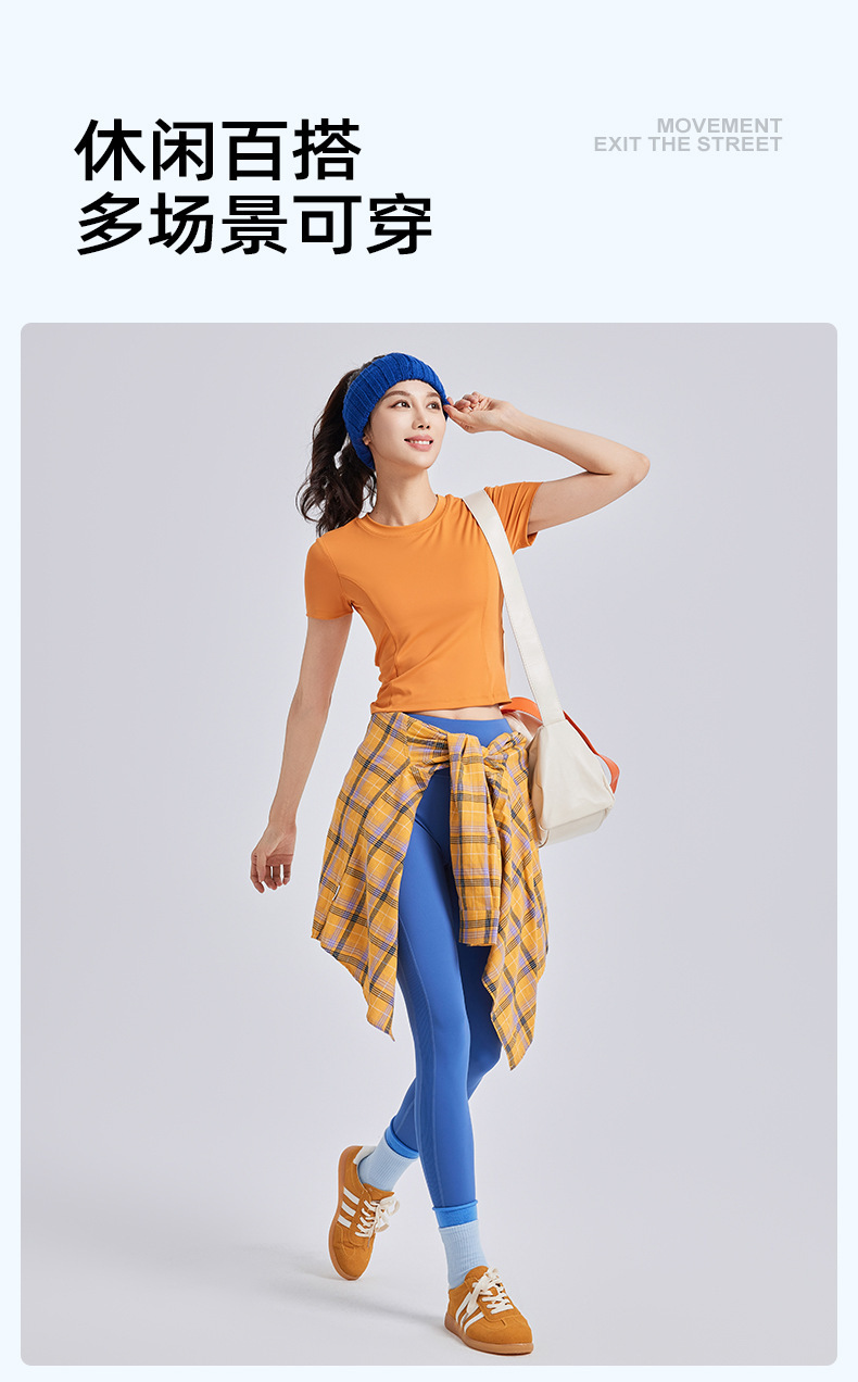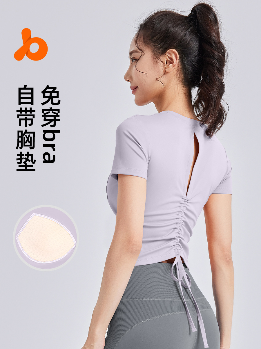Juyitang New Hollow-out 요가 의류 반팔 여성용 유행 서랍 접이식 벨트 가슴 패드 피트니스 스포츠 티셔츠스토어 가기