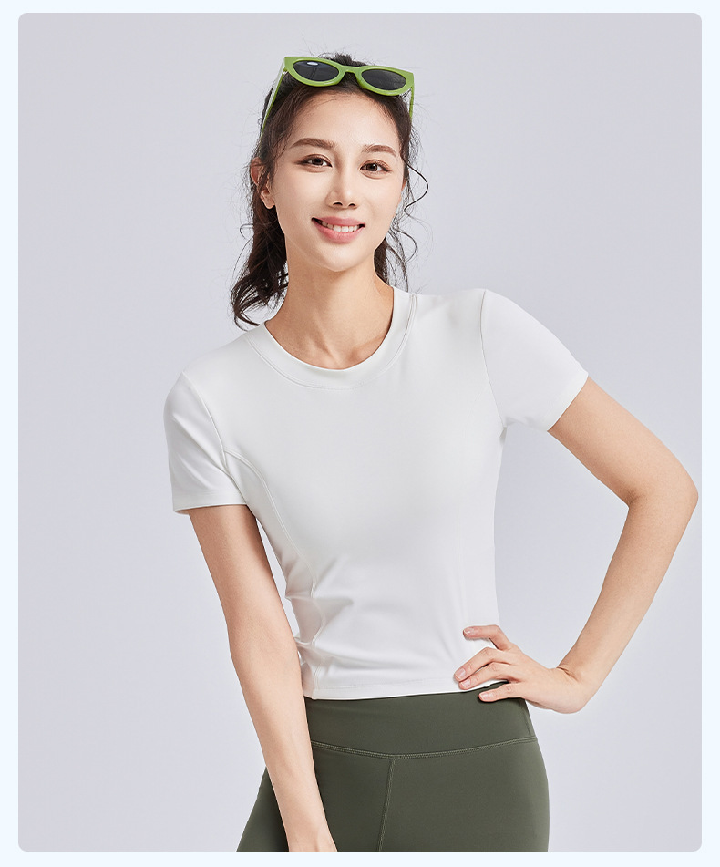 Juyitang New Hollow-out 요가 의류 반팔 여성용 유행 서랍 접이식 벨트 가슴 패드 피트니스 스포츠 티셔츠
