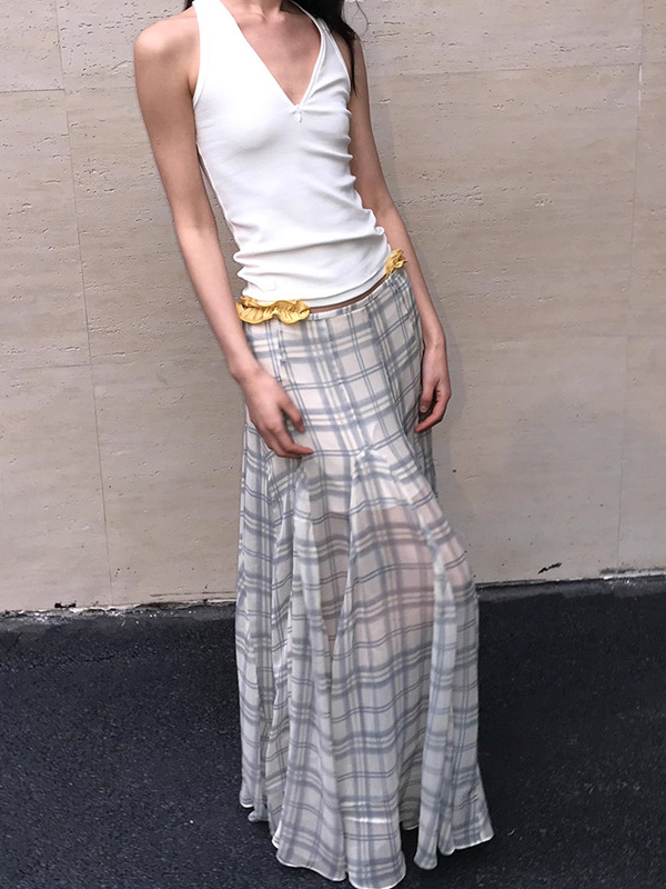 히비스커스 불규칙한 격자 무늬 피쉬 테일 트림 피규어가 메쉬 우아한 부드러운 스커트 디자인 감각을 통해 약간 슬리밍스토어 가기