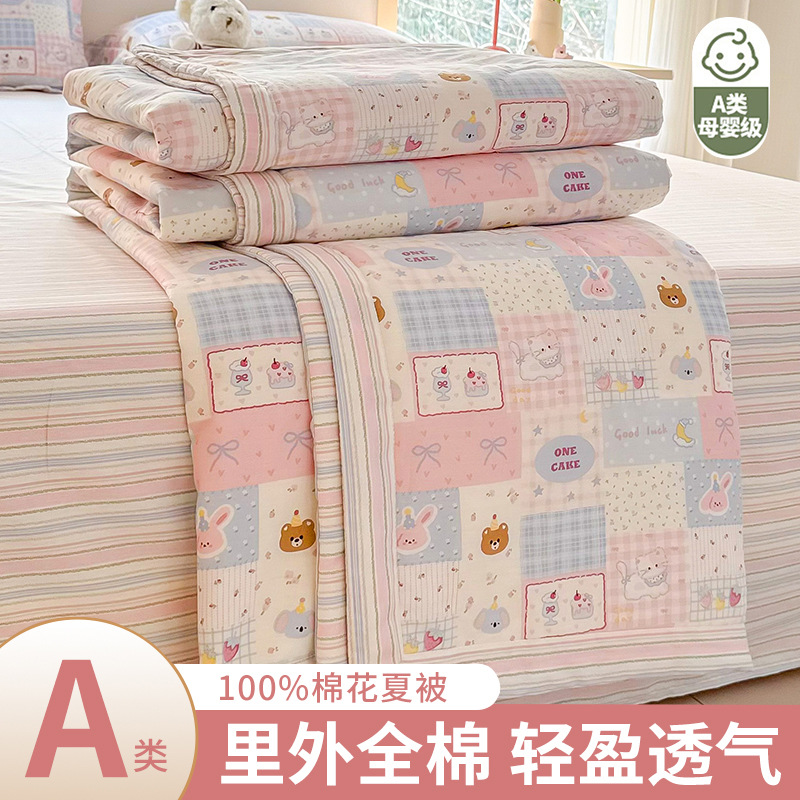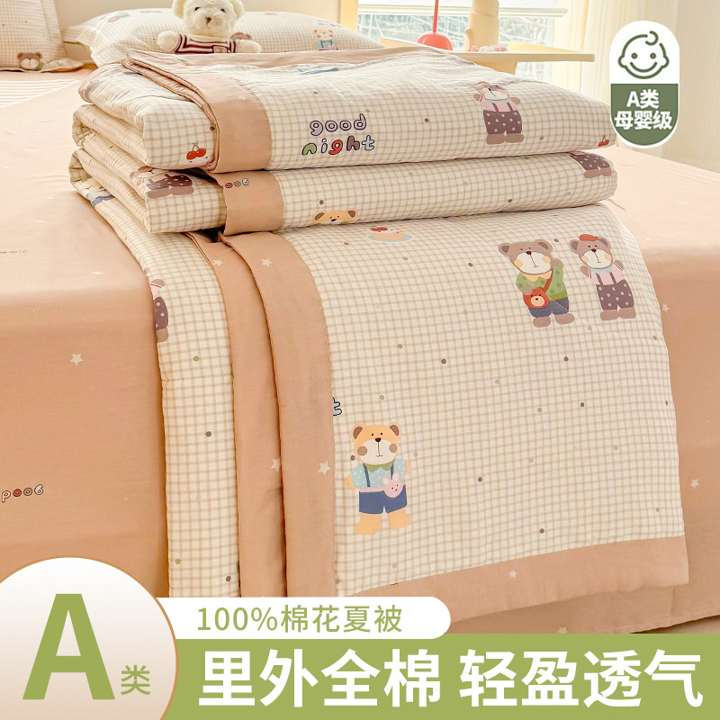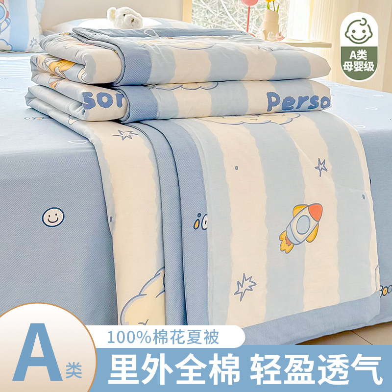 클래스 A 100% 면 여름 이불 순면 어린이 이불 여름 시원한 이불 학생 에어컨 이불 신장 면 이불스토어 가기