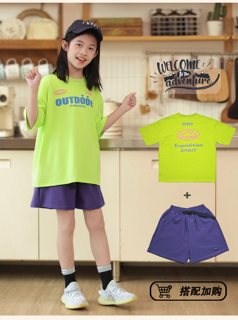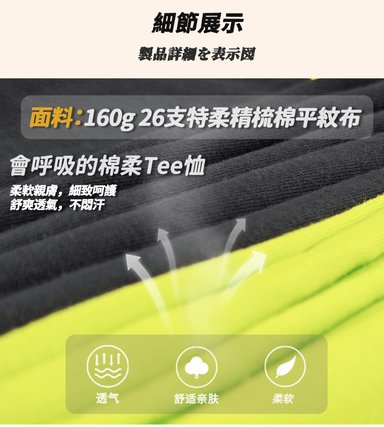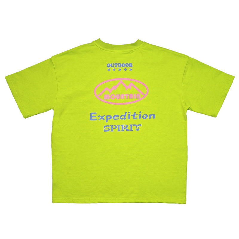 重磅精棉平纹布,亲肤透气,会呼吸的T恤;落肩宽松版型,荧光撞色环保印花,潮酷吸睛
