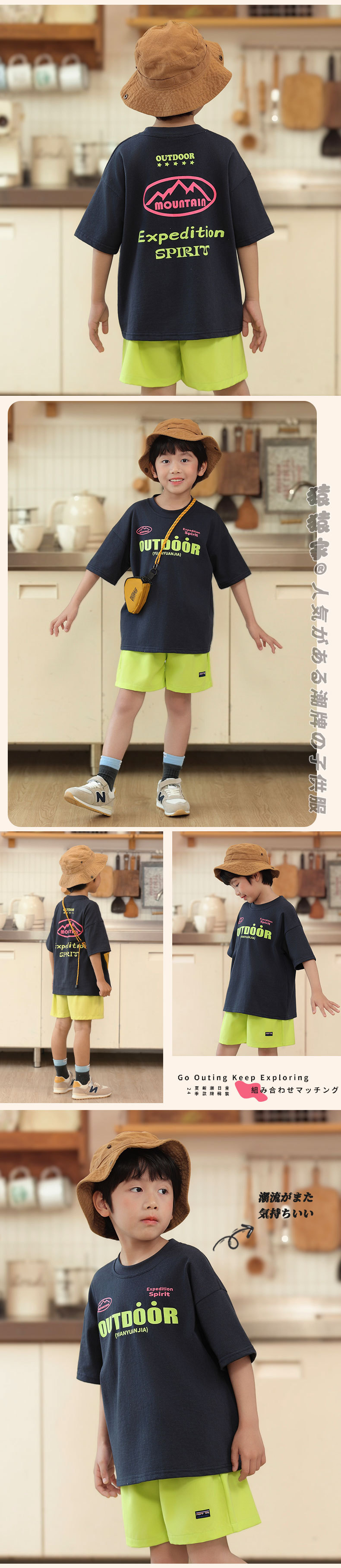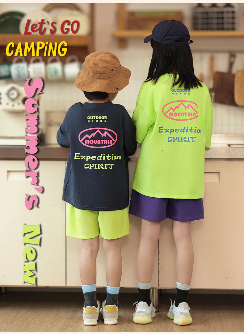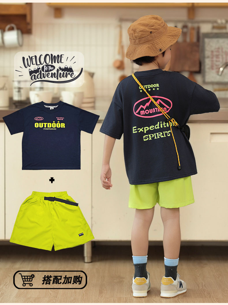 2026 여름 아동 티셔츠 산 스타일 아동복 남아 반팔 트렌디 브랜드 중대형 아동 도파민 프린트 순면 의류