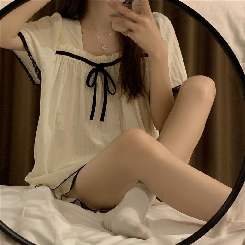 화이트 활 레이스 파자마 여성 여름 반팔 반바지 공주 스타일 세트 2025 인터넷 축하 새 도착스토어 가기