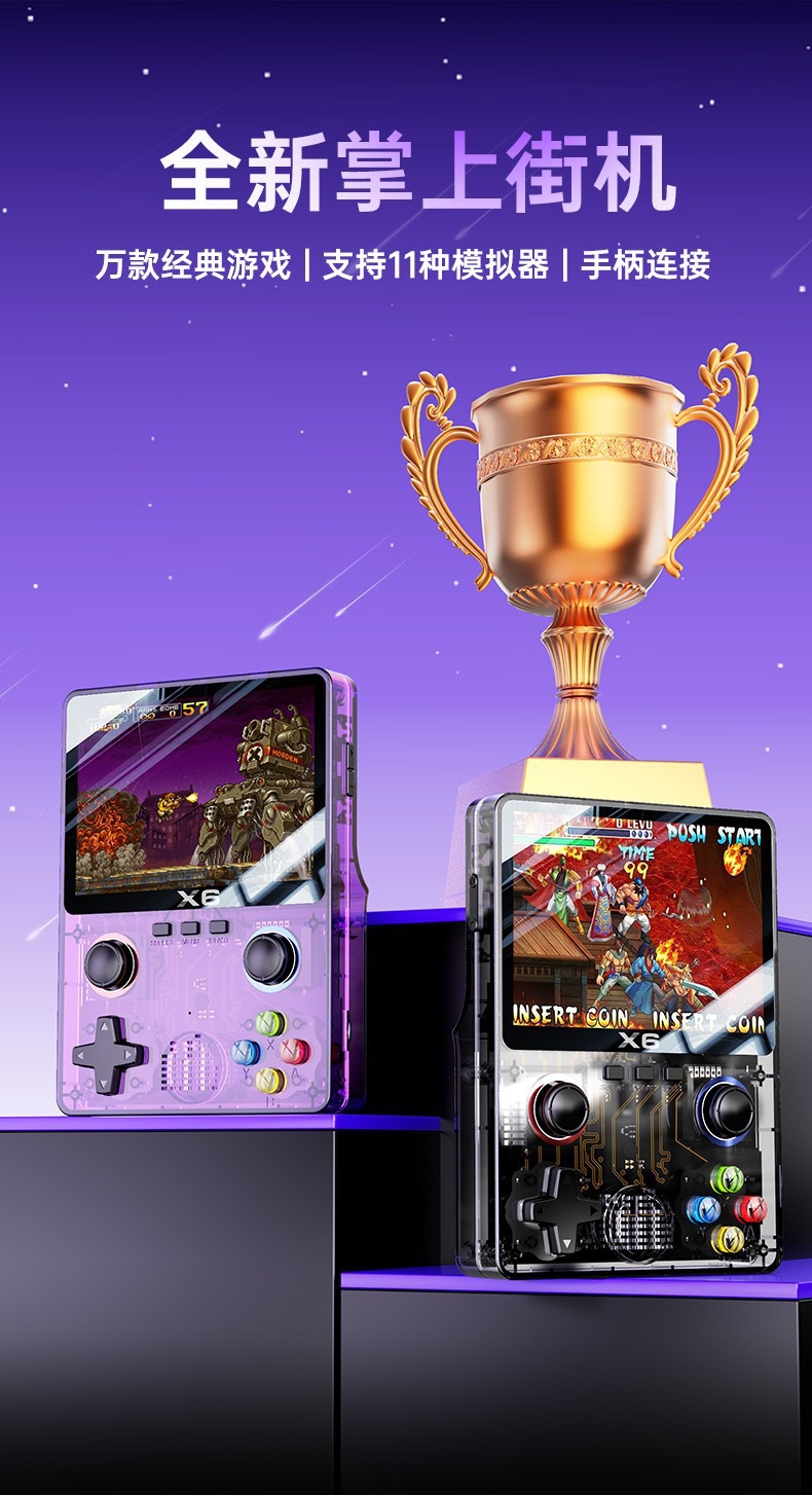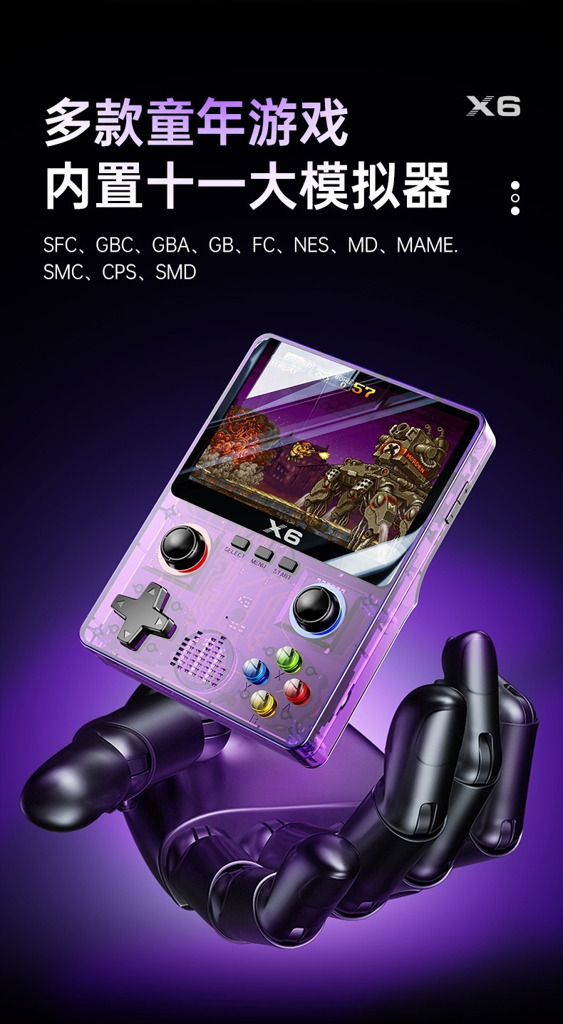 새로운 X6 핸드 헬드 게임 기계 클래식 미니 휴대용 더블 HD 연결 TV 게임 아케이드