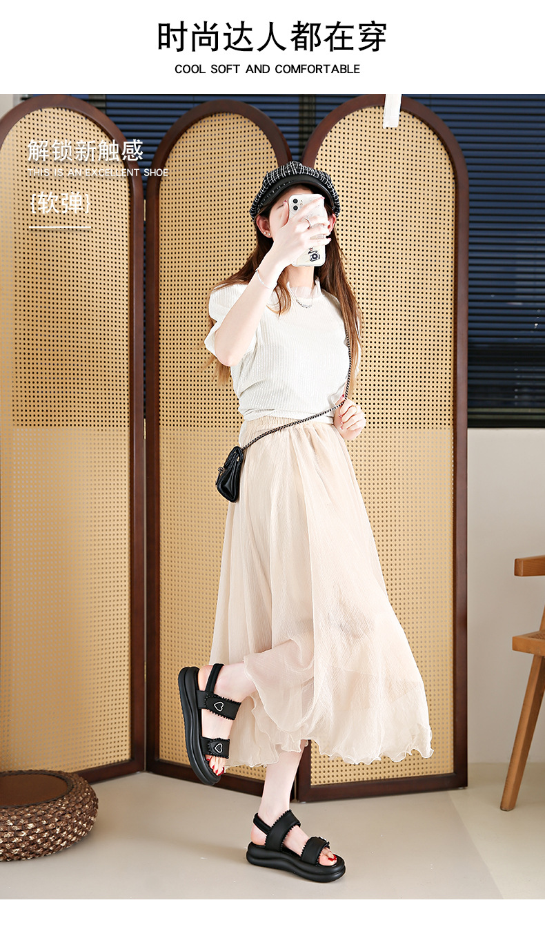 여성을위한 두꺼운 밑창 스포츠 로마 샌들 2025 여름 새로운 요정 스타일 간단한 벨크로 오픈 발가락 비치 샌들