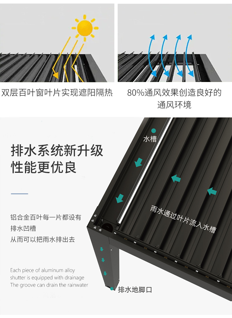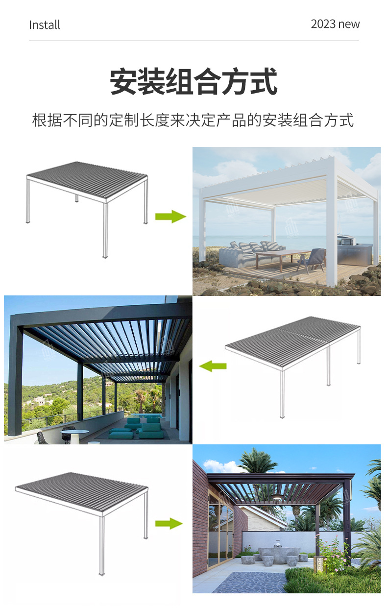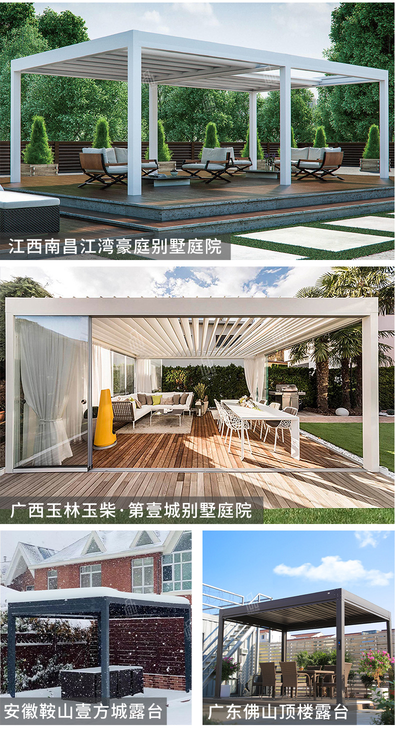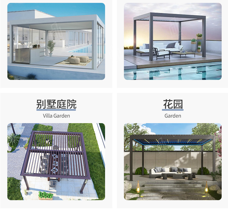 모기장 작은 집 정원 중국 슬라이딩 도어 루버 파빌리온 자동차 레이아웃 갤러리 파빌리온 차양 알루미늄 합금 파빌리온
