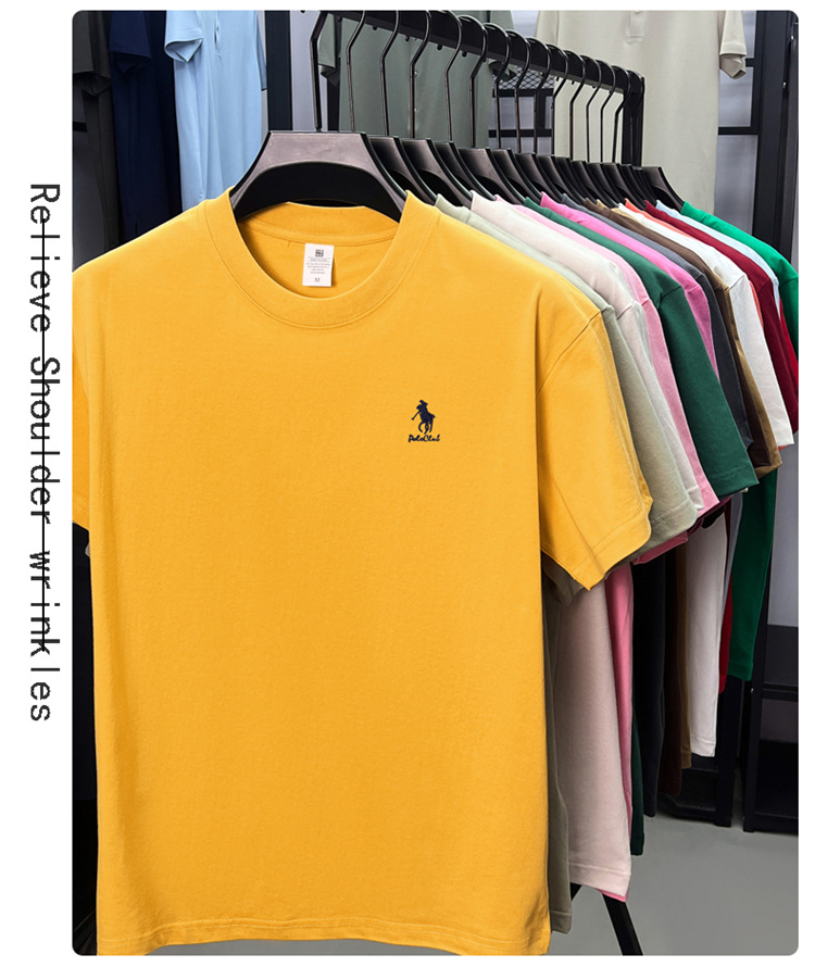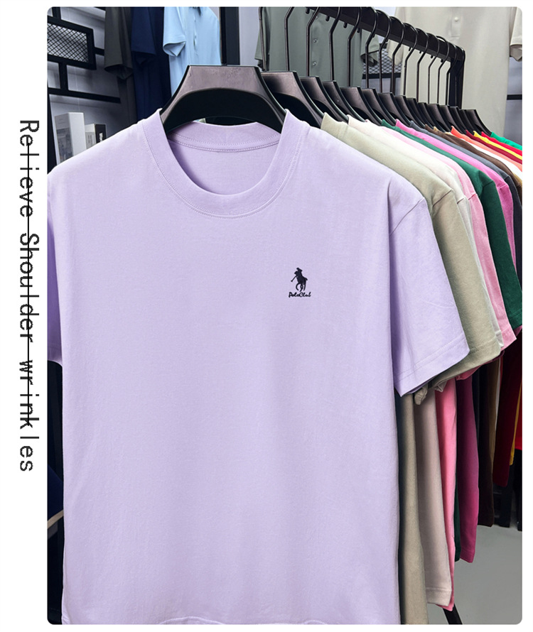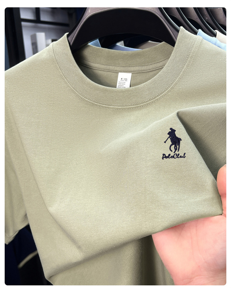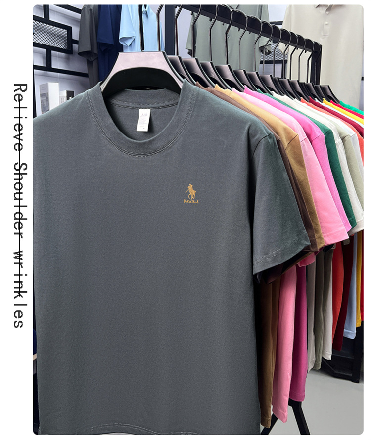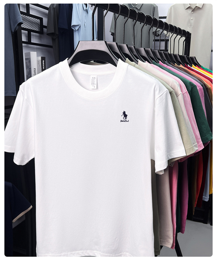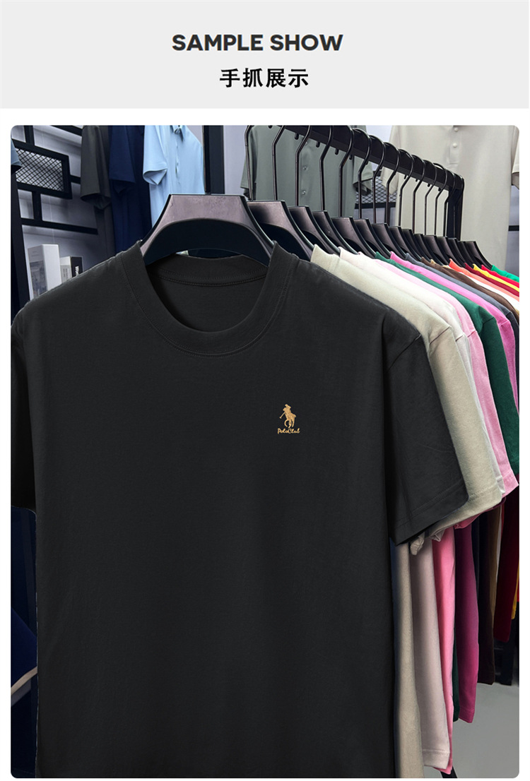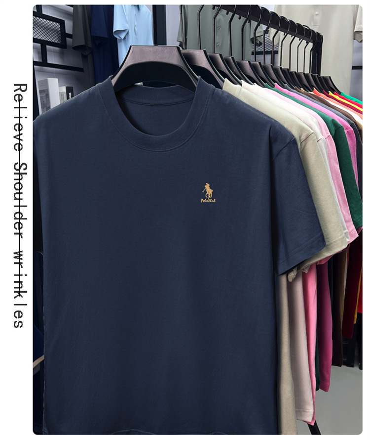 폴 100% 코튼 라운드 넥 남성 티셔츠 여름 자수 중년 단순 캐주얼 땀 흡수 통기성 남성 짧은 소매 티셔츠