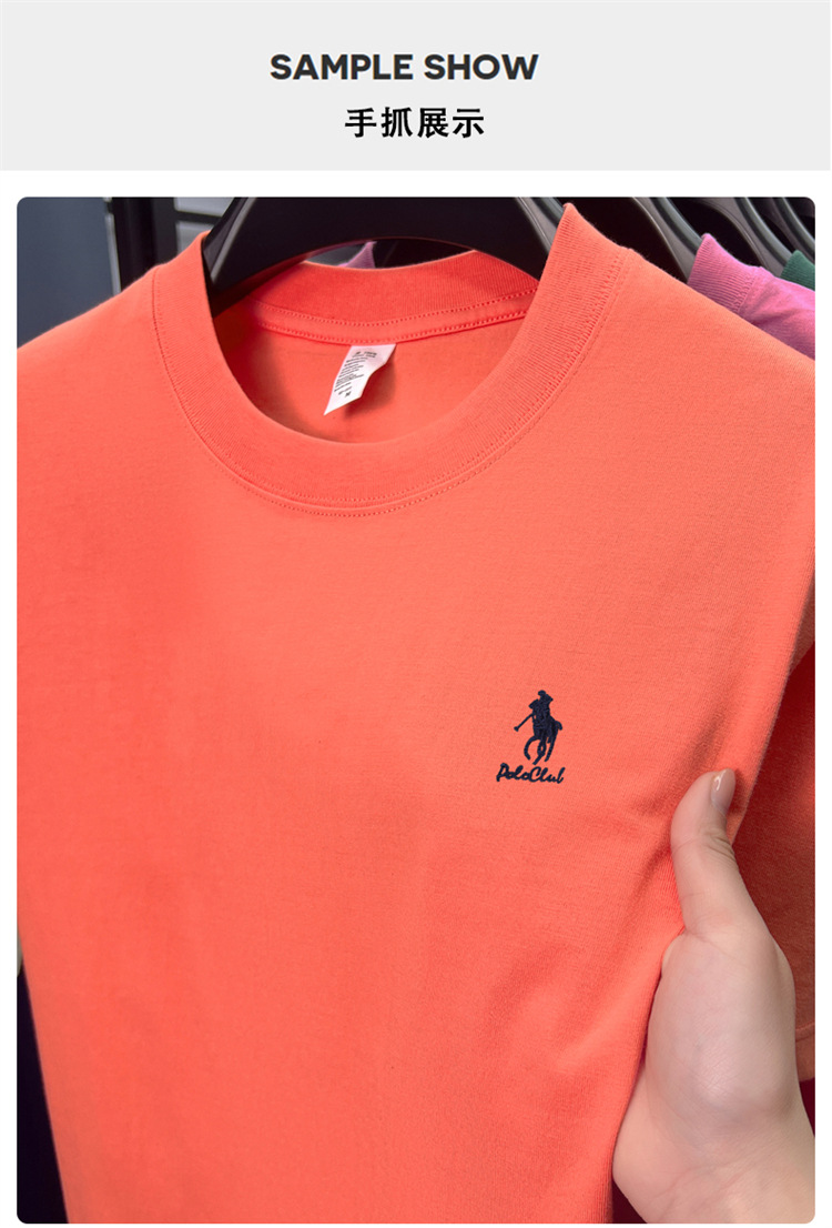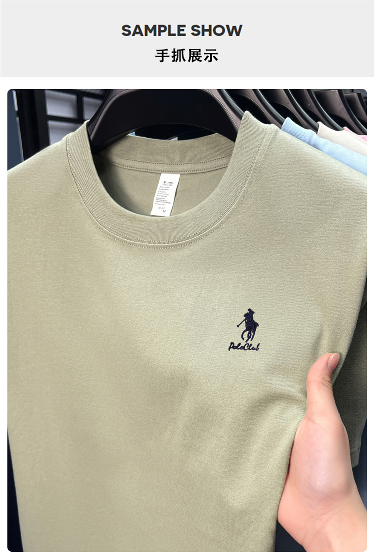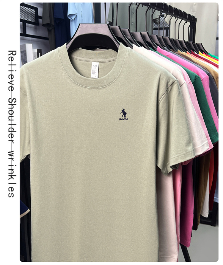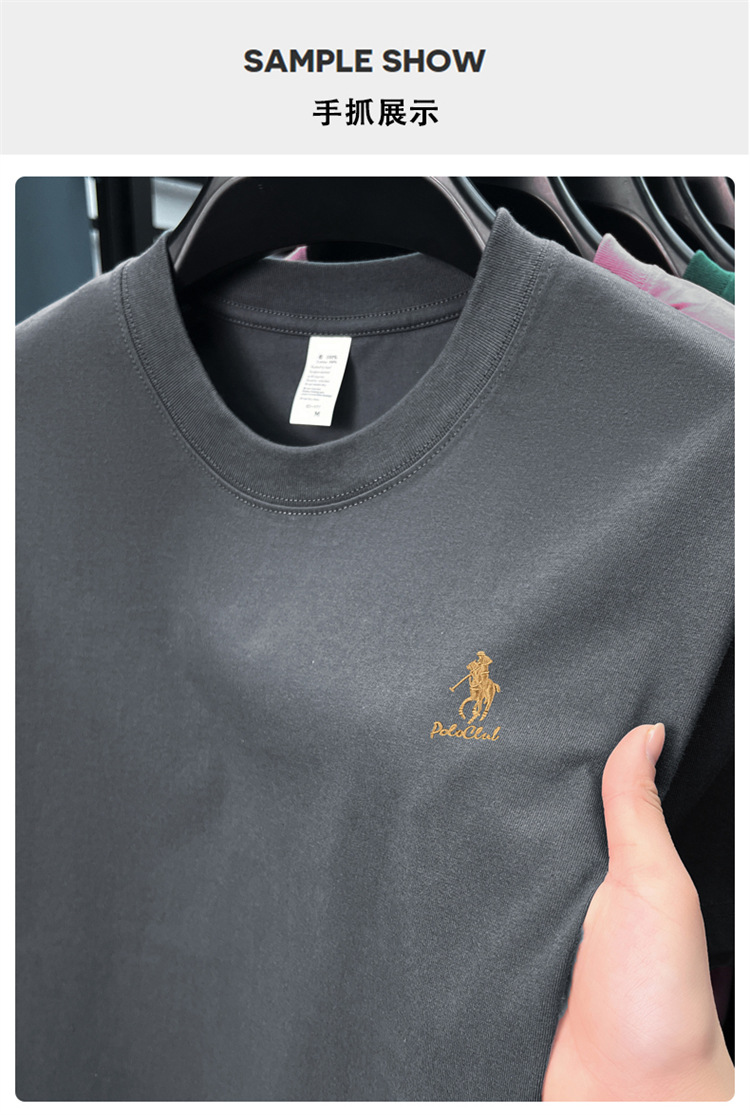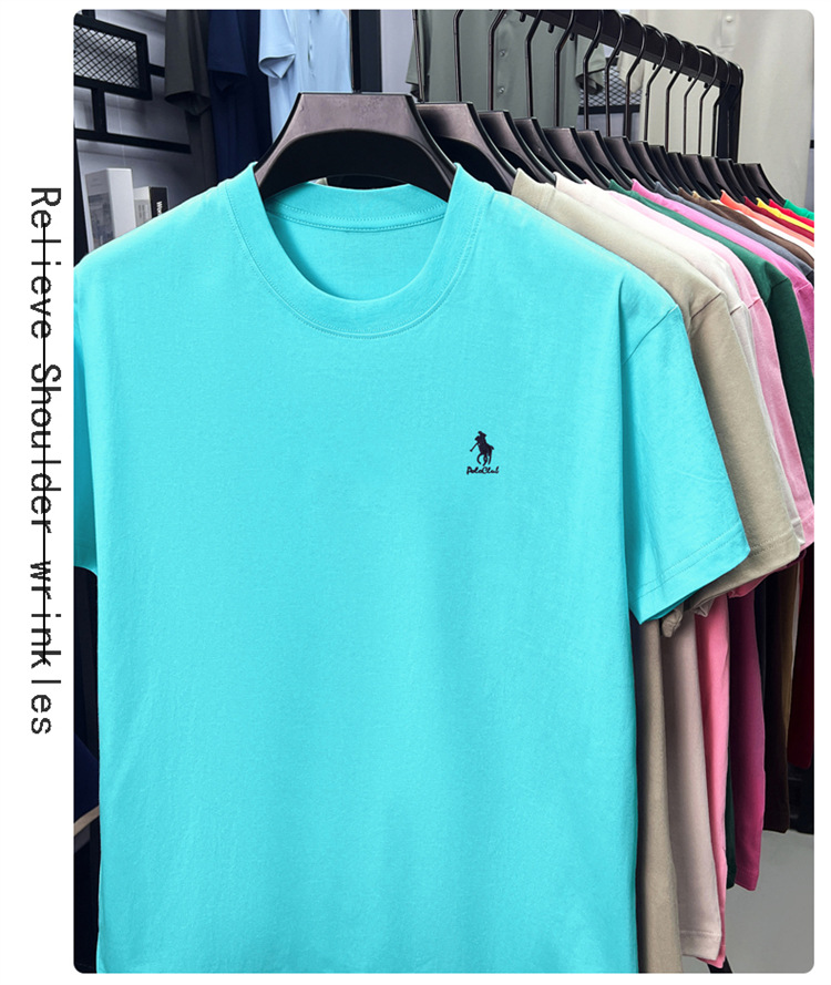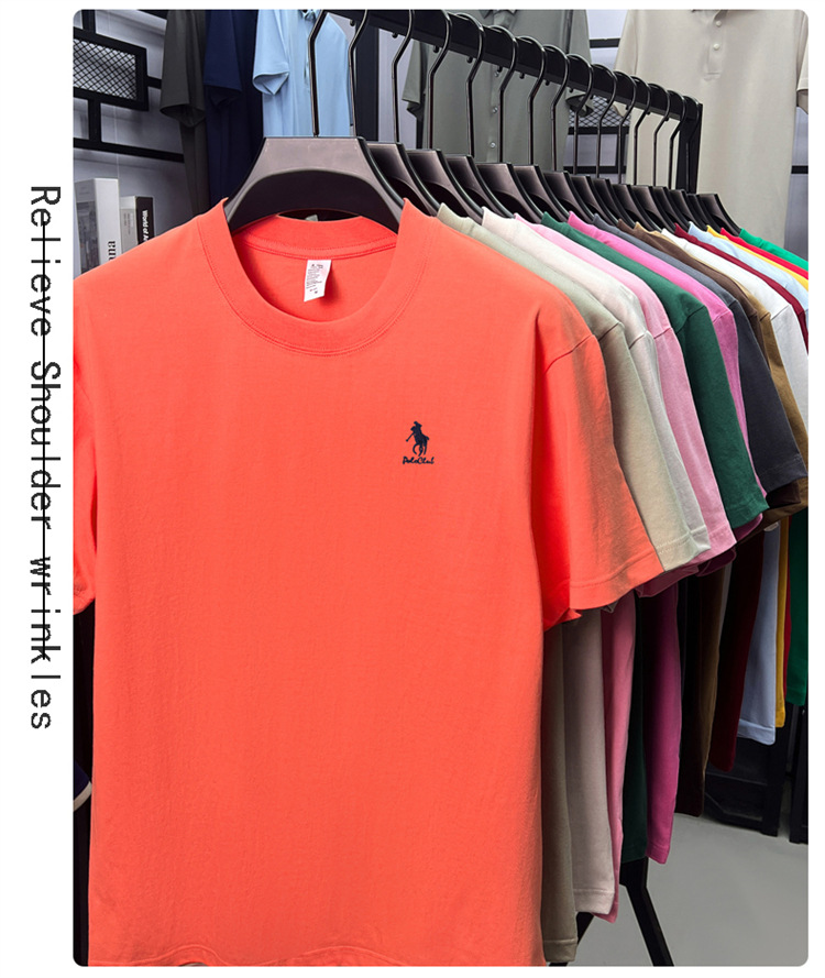 폴 100% 코튼 라운드 넥 남성 티셔츠 여름 자수 중년 단순 캐주얼 땀 흡수 통기성 남성 짧은 소매 티셔츠