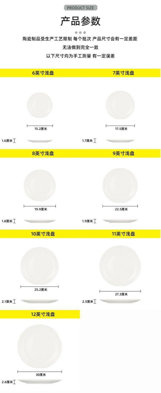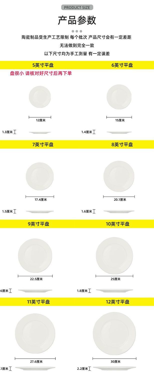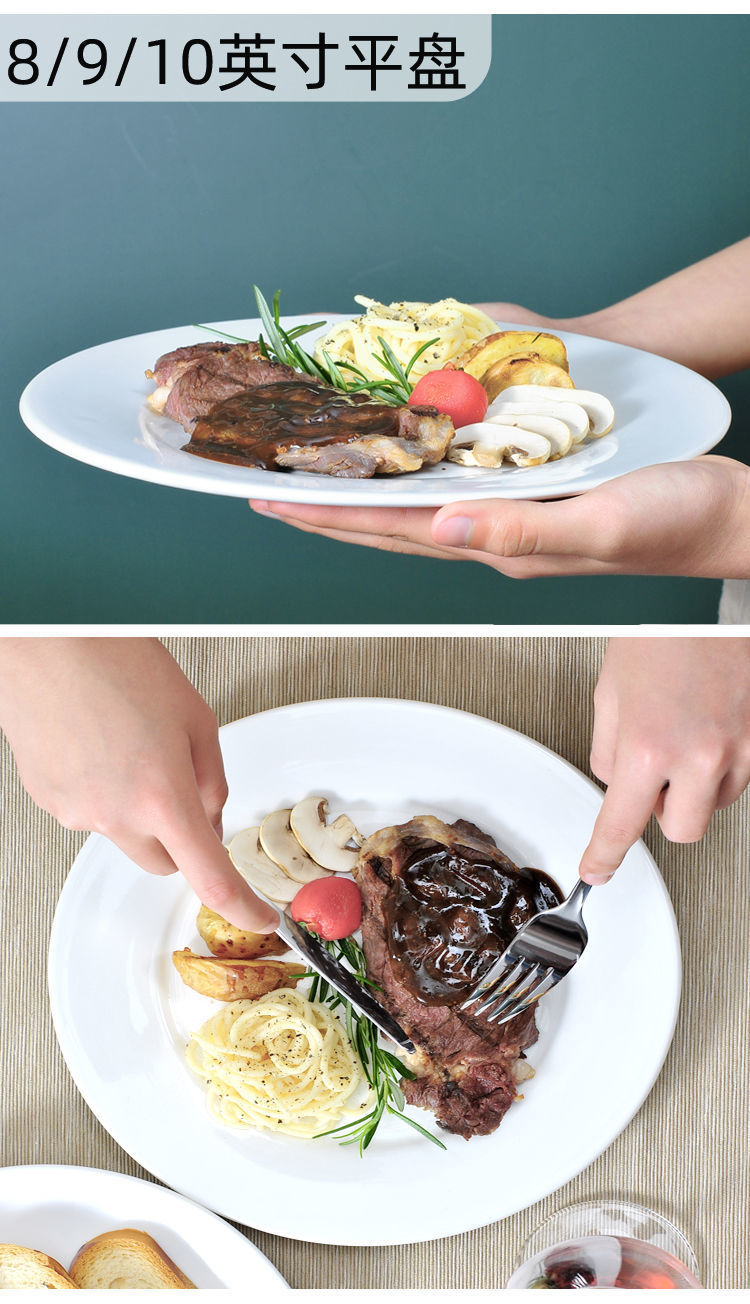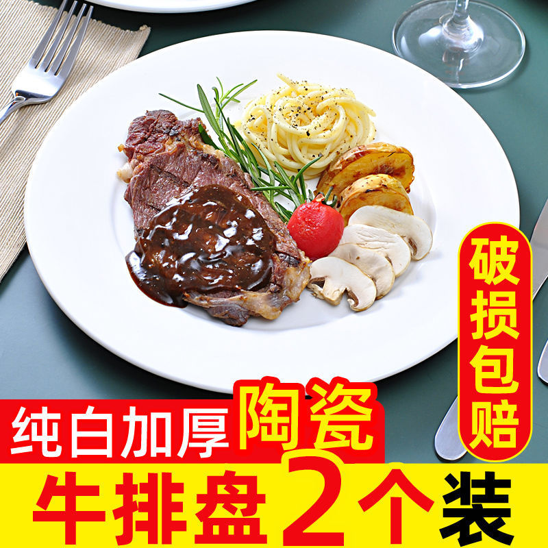 세라믹 플레이트 스테이크 디너 플레이트 서양 음식 접시 가정용 플랫 플레이트 얕은 플레이트 화이트 웨스턴 레스토랑 레스토랑 식기 라운드