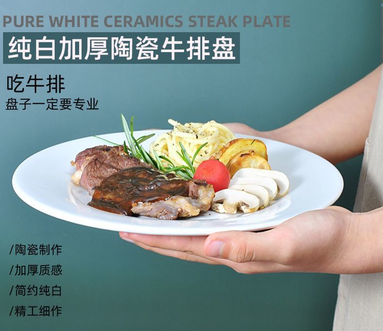 세라믹 플레이트 스테이크 디너 플레이트 서양 음식 접시 가정용 플랫 플레이트 얕은 플레이트 화이트 웨스턴 레스토랑 레스토랑 식기 라운드스토어 가기