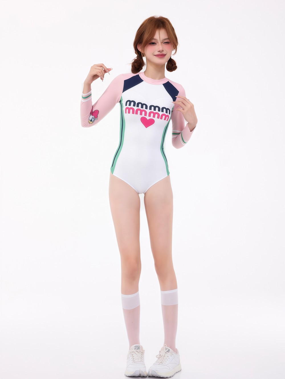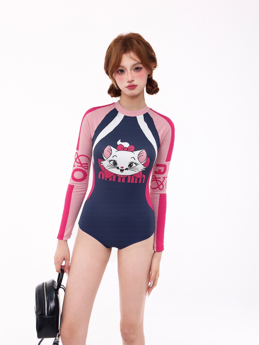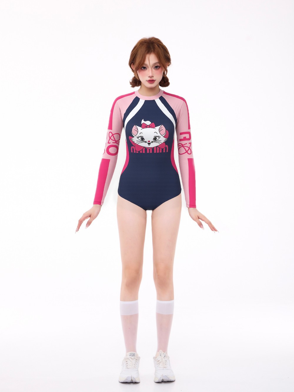 2025 새로운 귀여운 소녀 고양이 슬림 슬리밍 긴 소매 속건성 서핑 및 스노클링 원피스 수영복 여성 수영복
