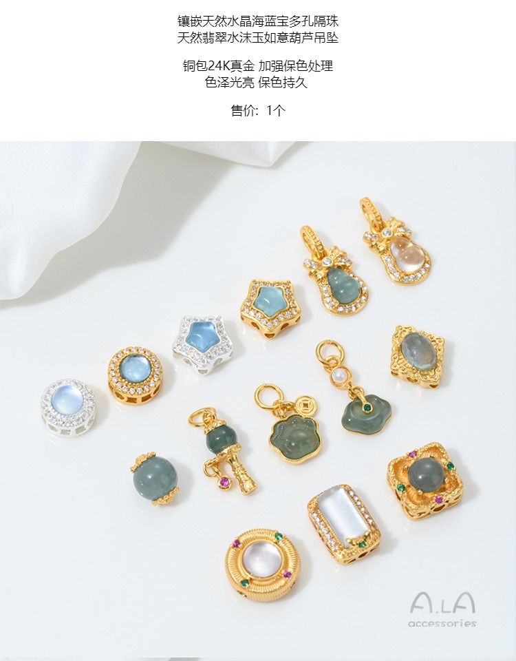 천연 크리스탈 아쿠아 마린 다공성 구슬 옥 Ruyi 조롱박 펜던트 diy 쥬얼리 액세서리 재료스토어 가기