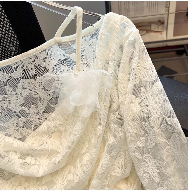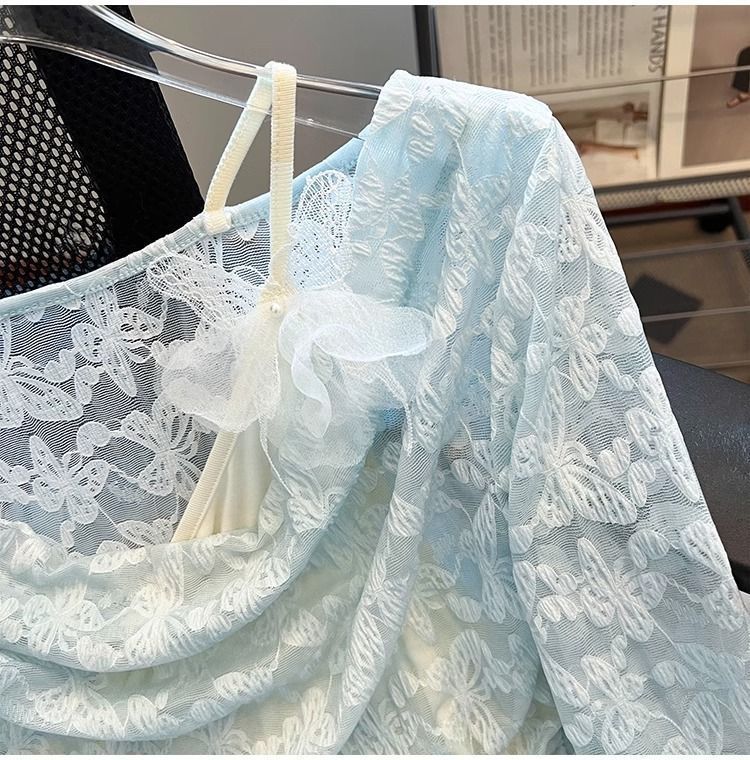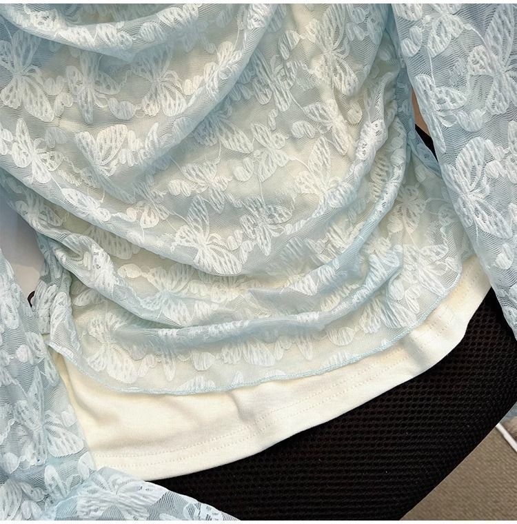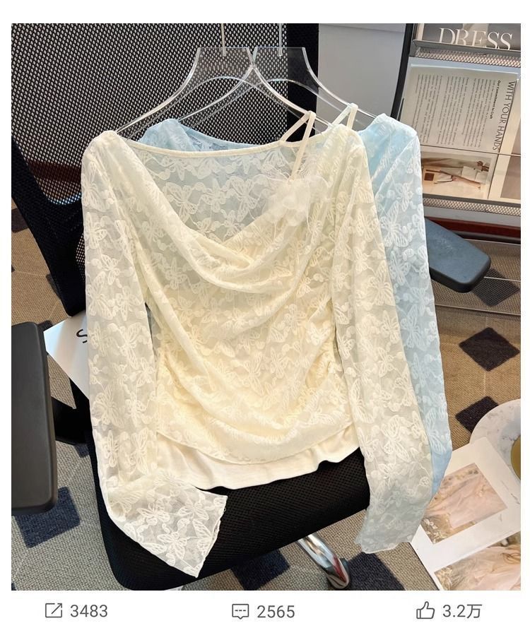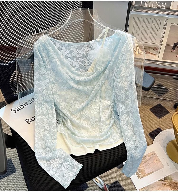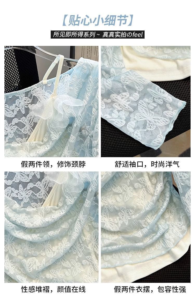 한국식 기질 그네 칼라 가짜 투피스 선스크린 쉬폰 셔츠 여성 여름 디자인 센스 틈새 마이크로 아이스 실크 에어컨 블라우스스토어 가기