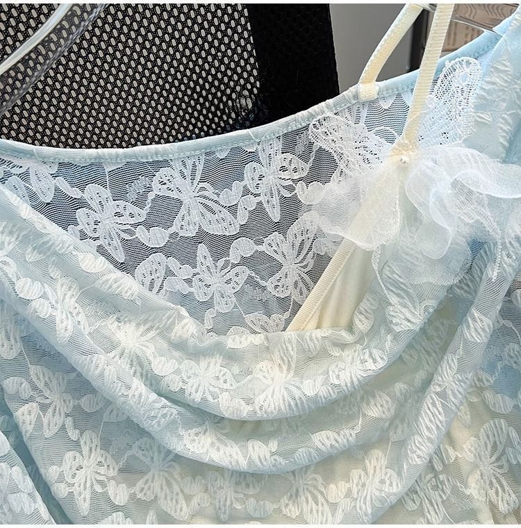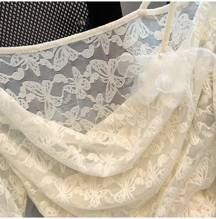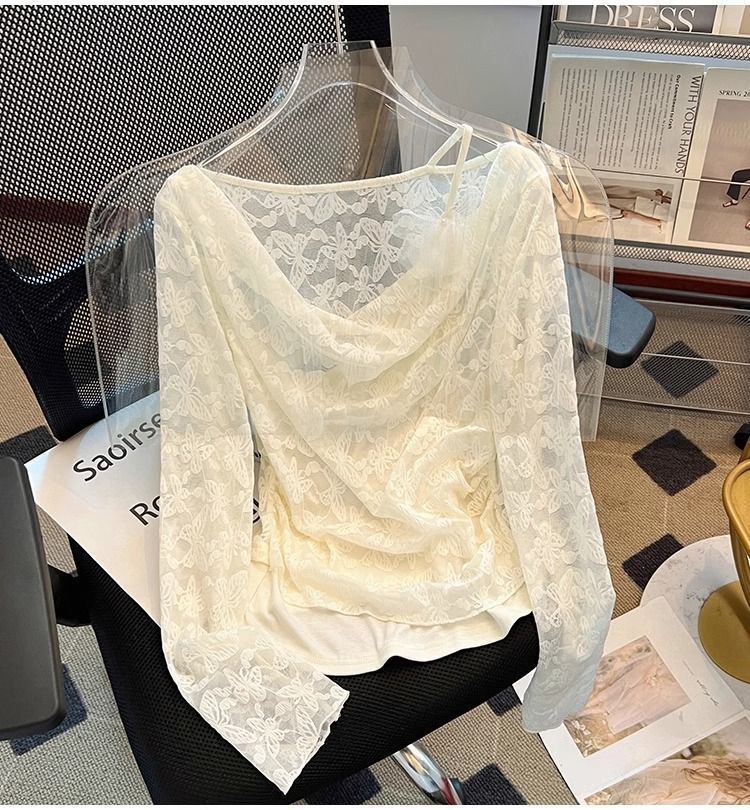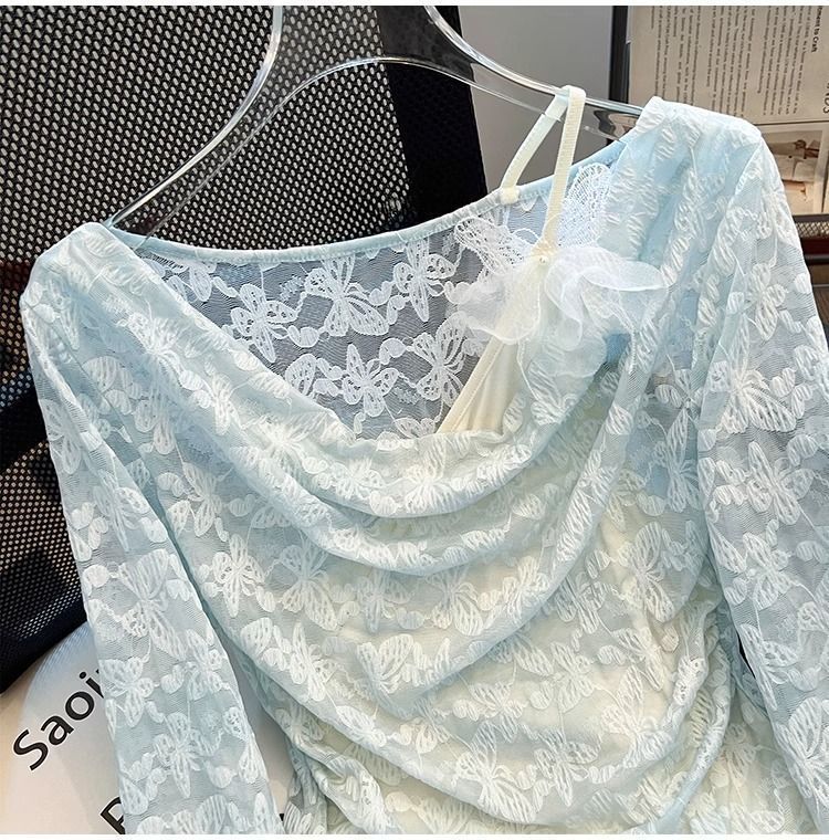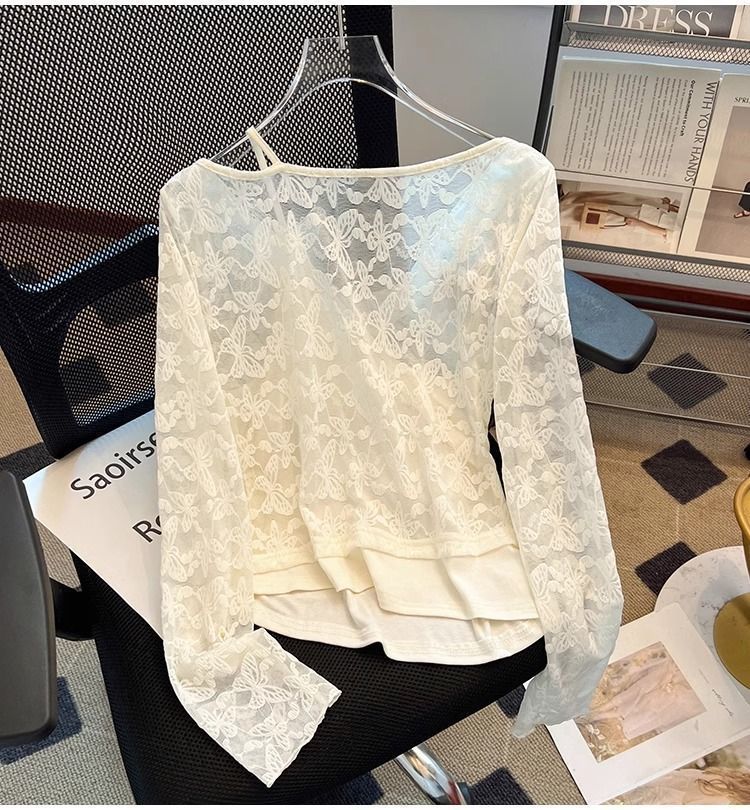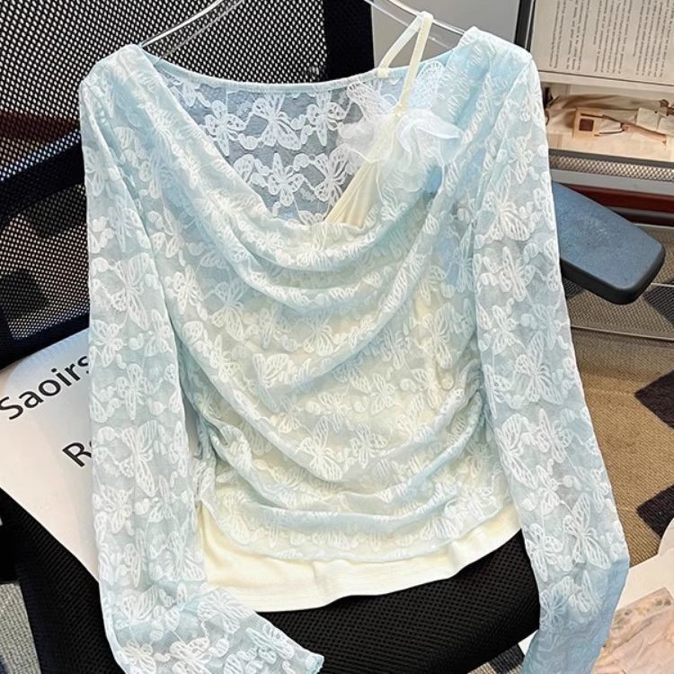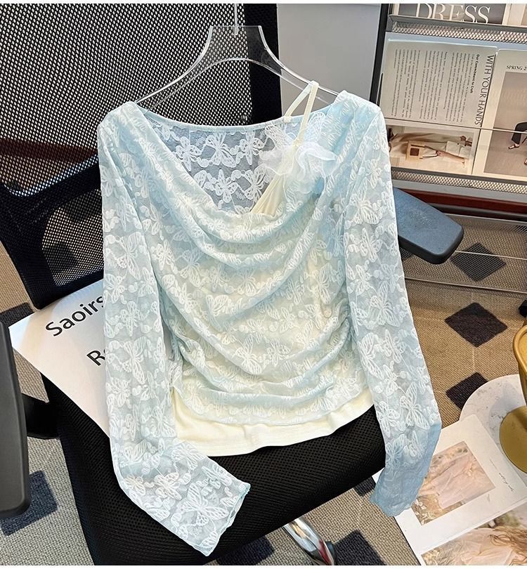 한국식 기질 그네 칼라 가짜 투피스 선스크린 쉬폰 셔츠 여성 여름 디자인 센스 틈새 마이크로 아이스 실크 에어컨 블라우스