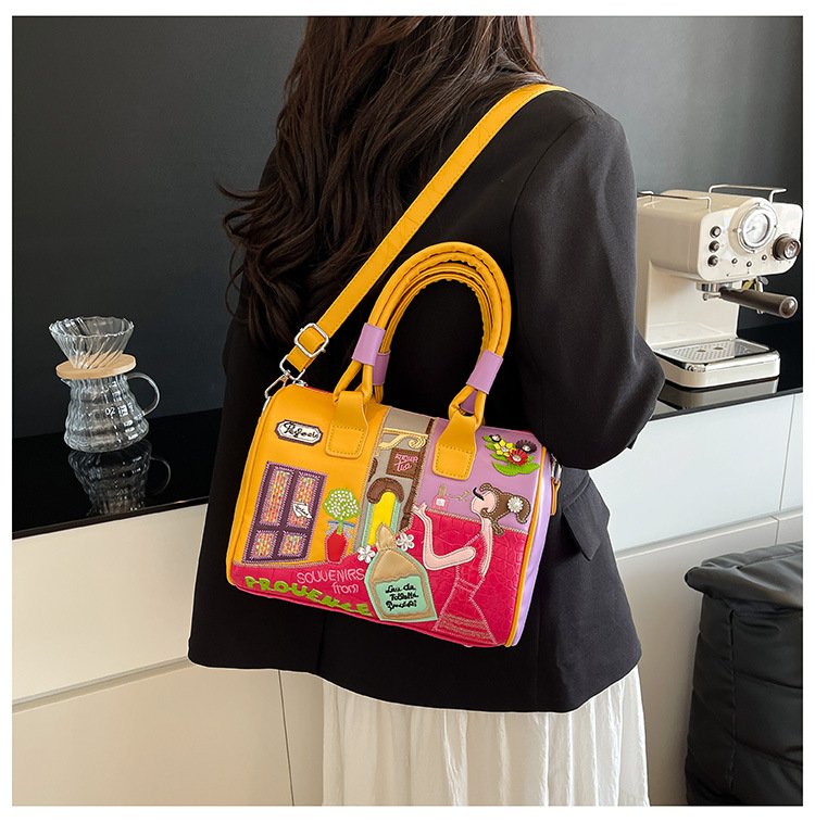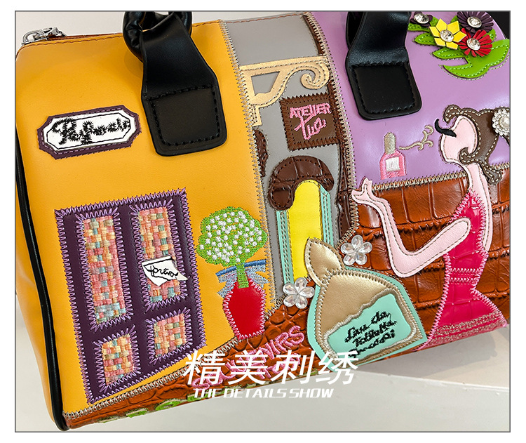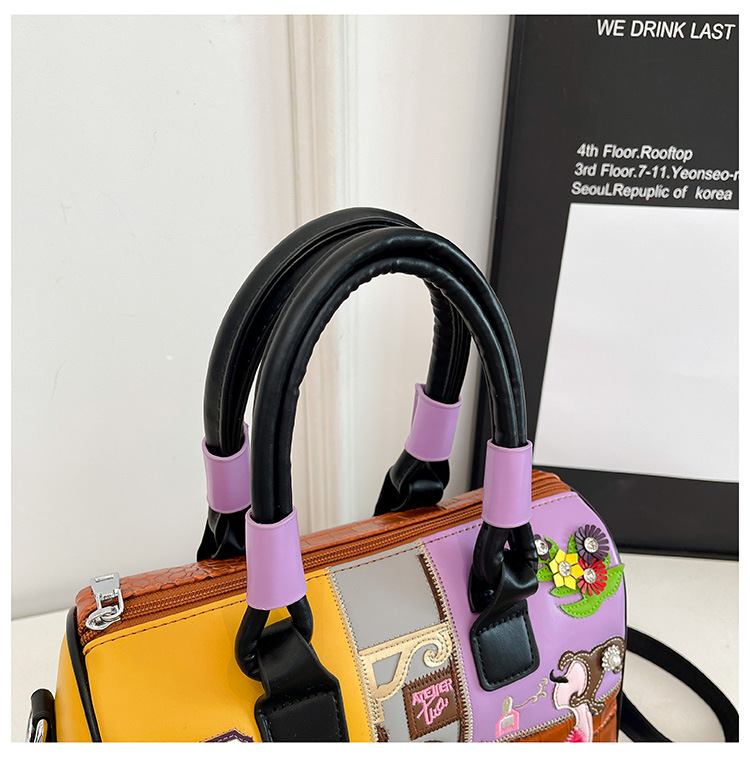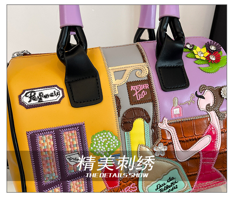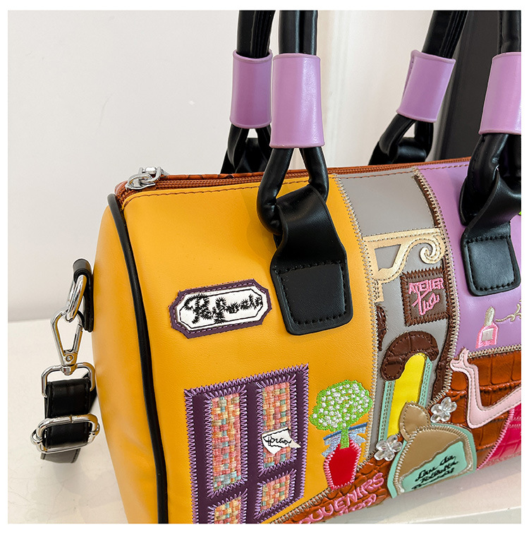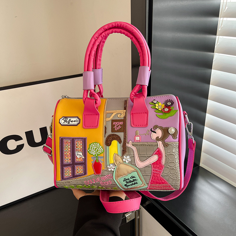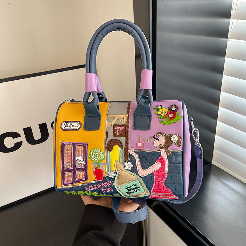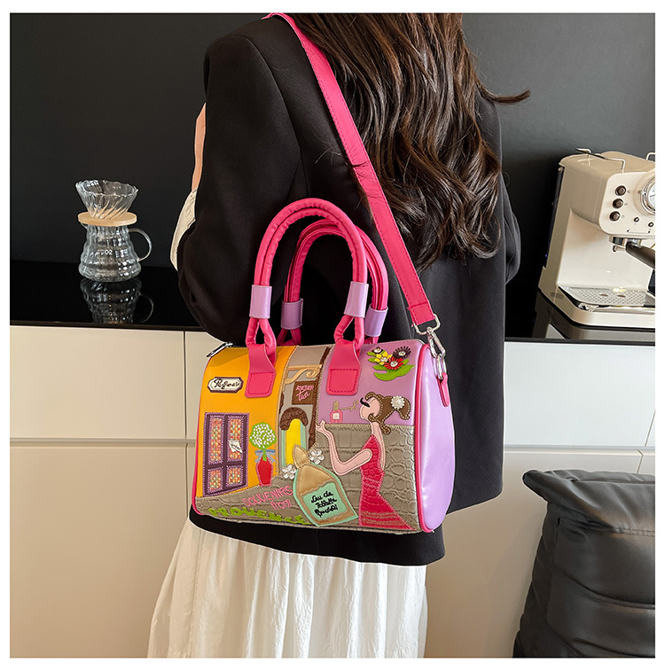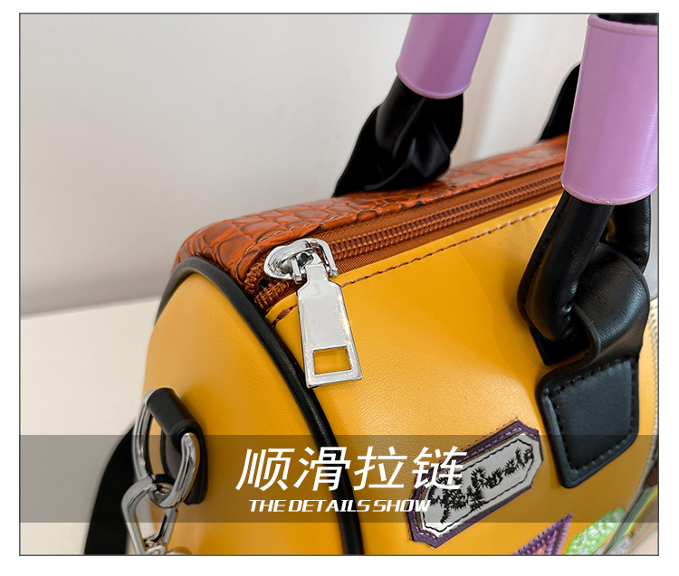 여성용 새 핸드백 자수 지퍼 배색 보스턴백 베개백 대용량 고급스러운 크로스백스토어 가기