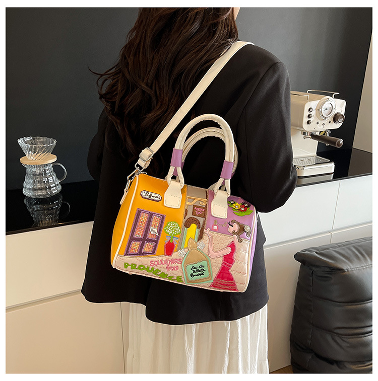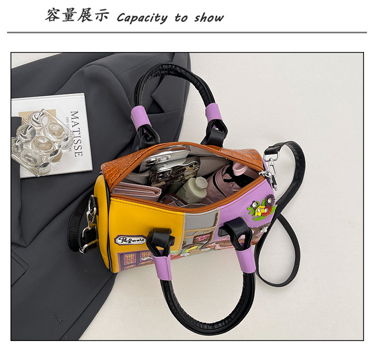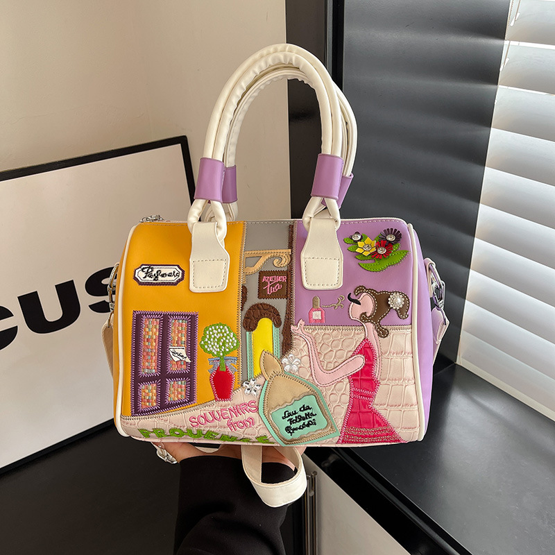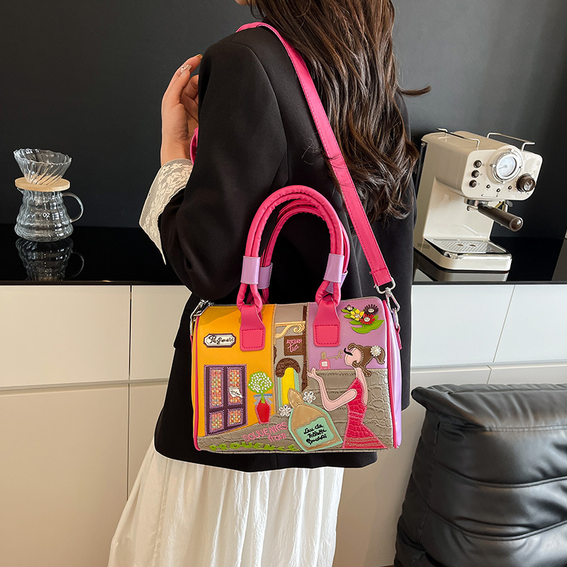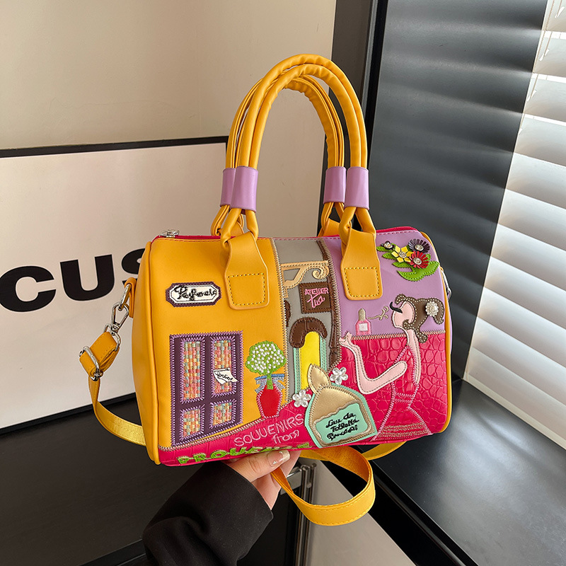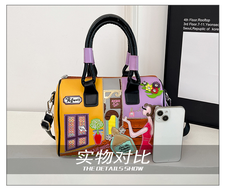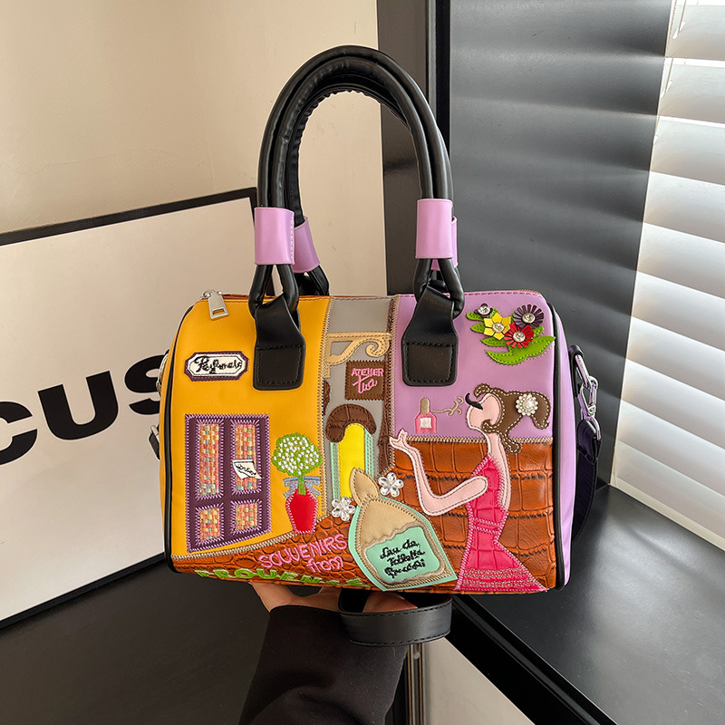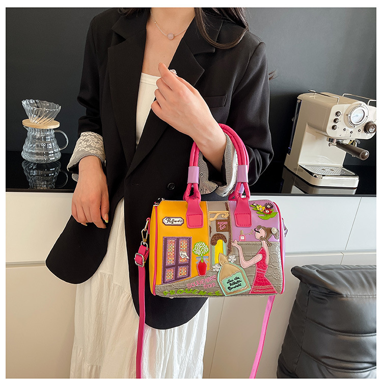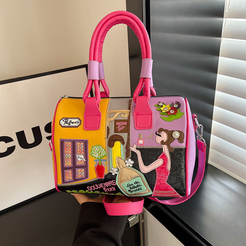 여성용 새 핸드백 자수 지퍼 배색 보스턴백 베개백 대용량 고급스러운 크로스백스토어 가기