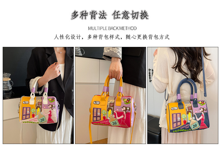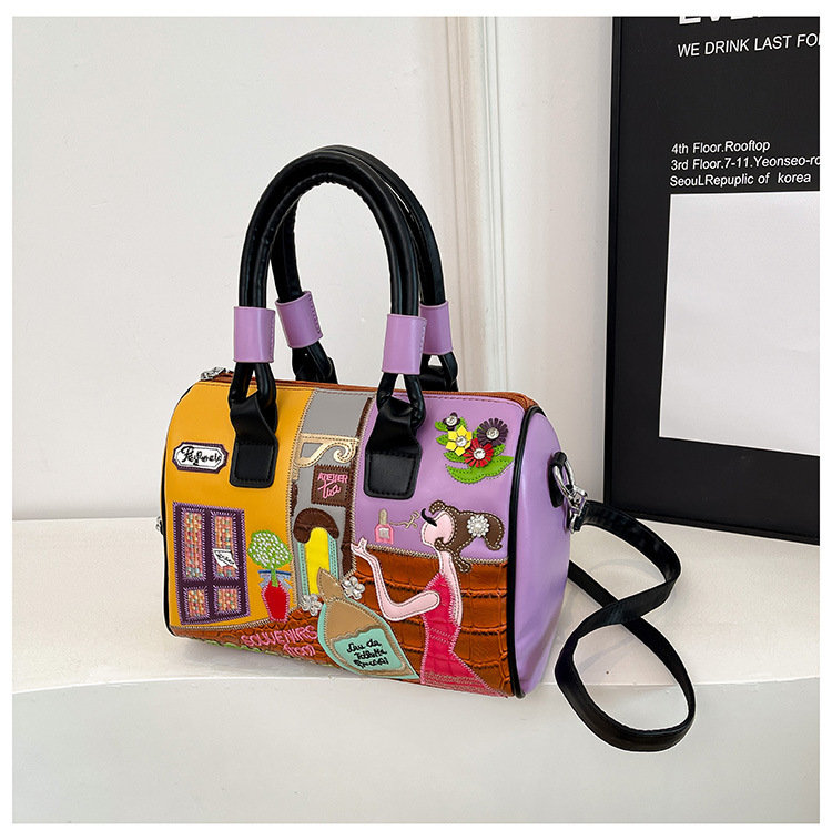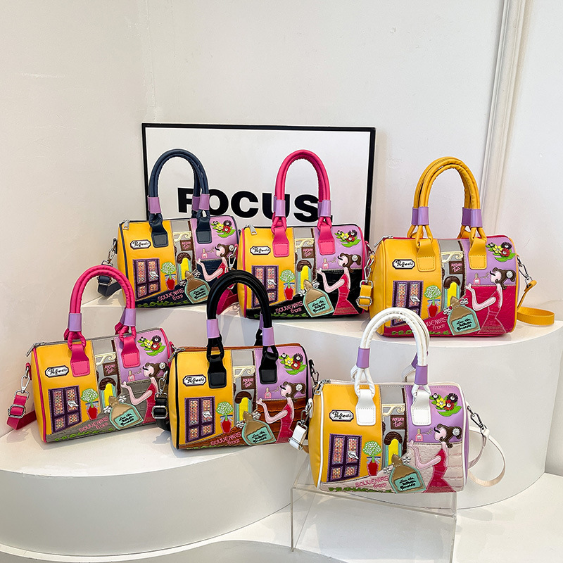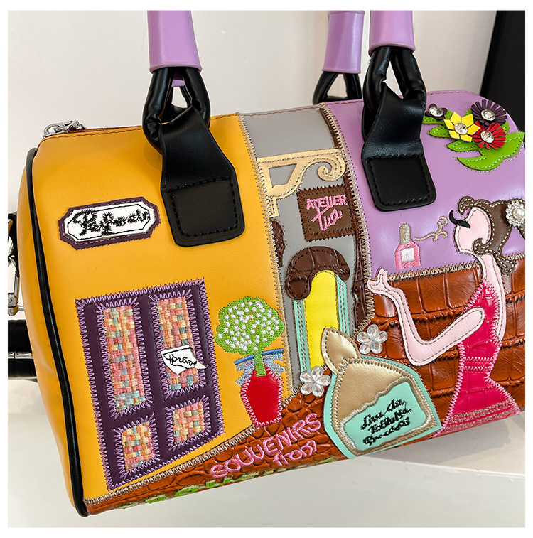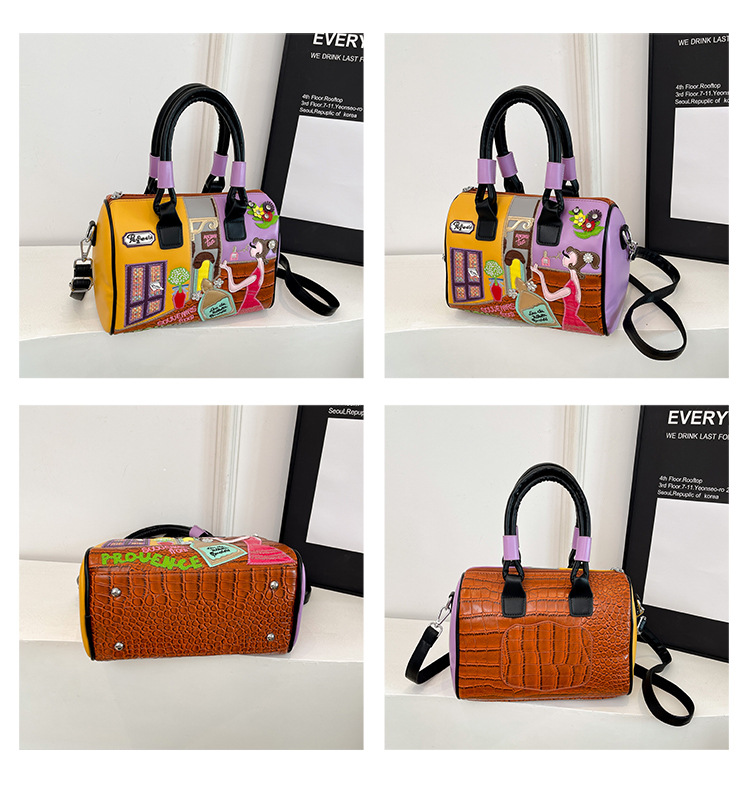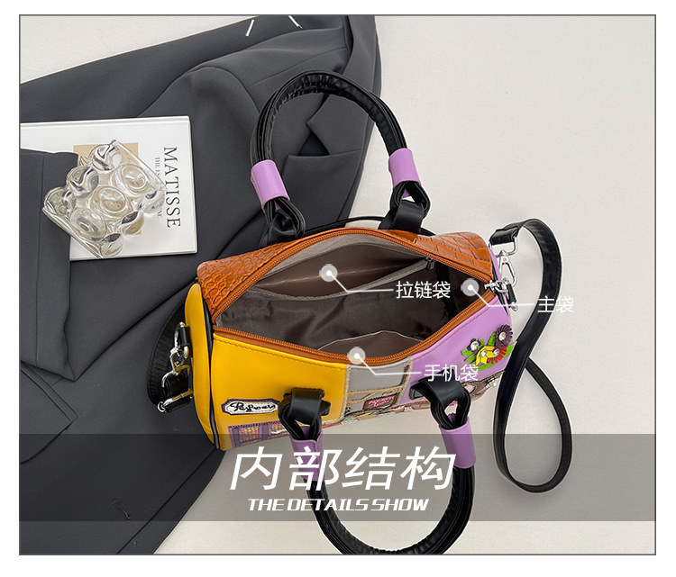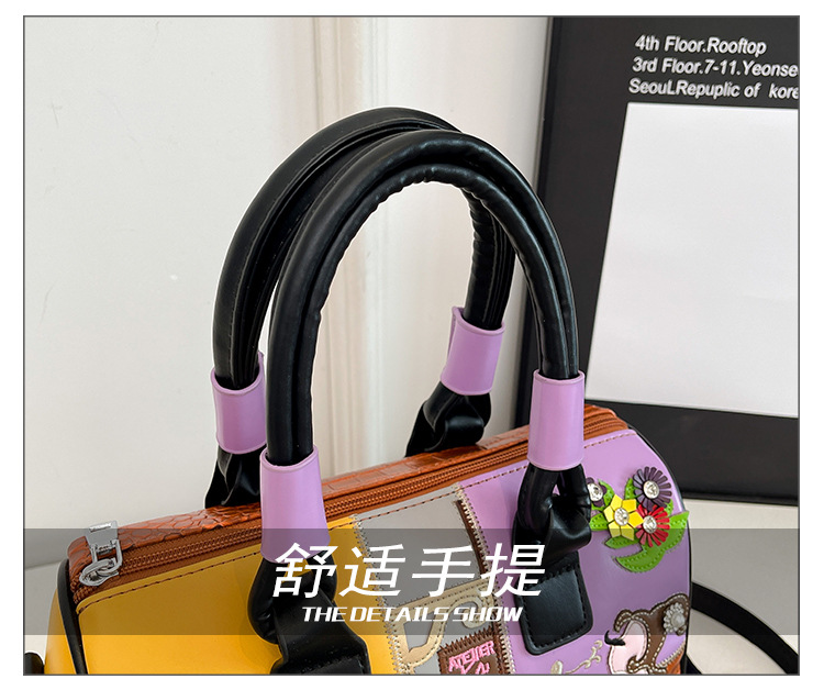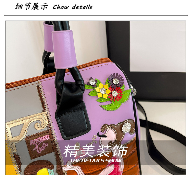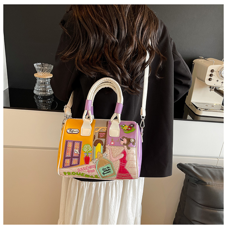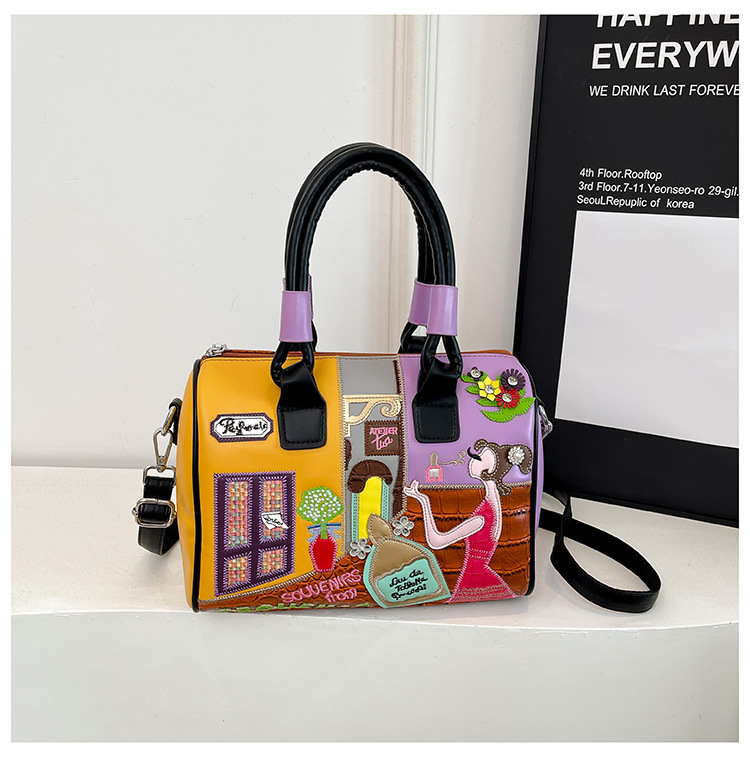 여성용 새 핸드백 자수 지퍼 배색 보스턴백 베개백 대용량 고급스러운 크로스백스토어 가기