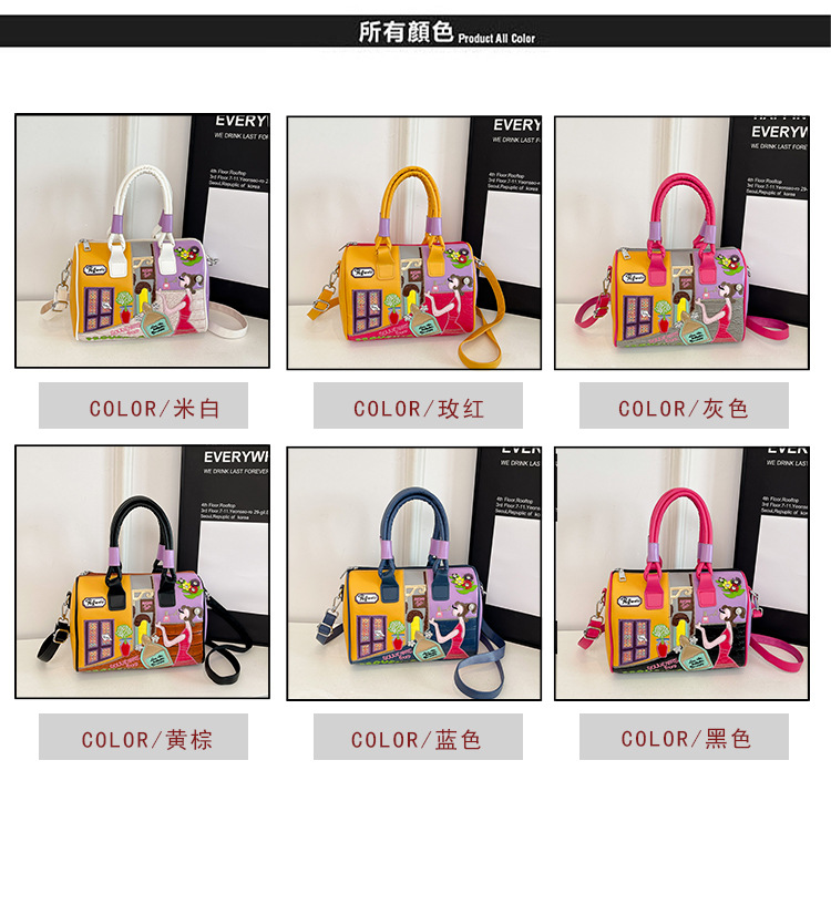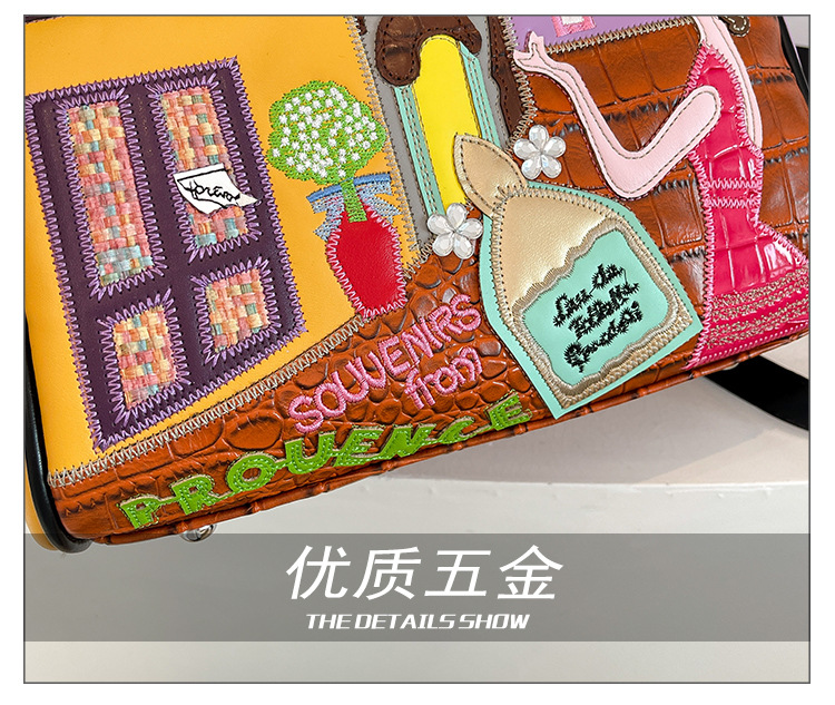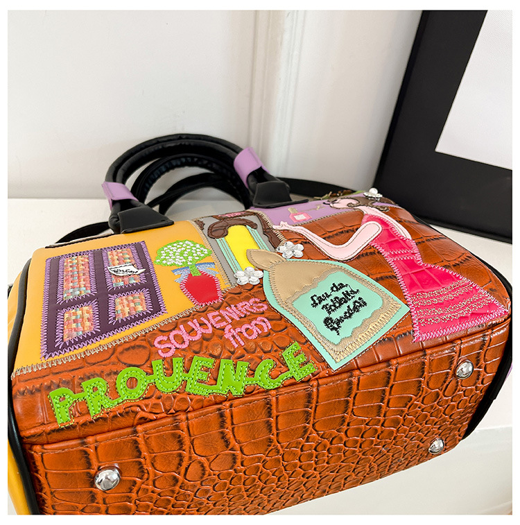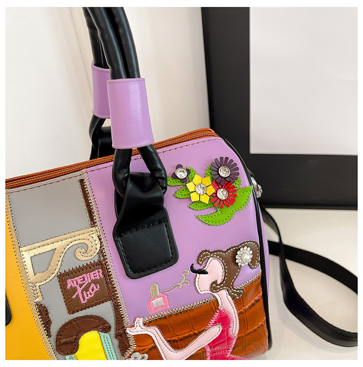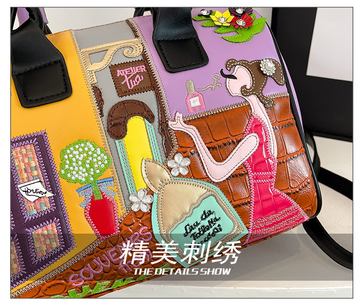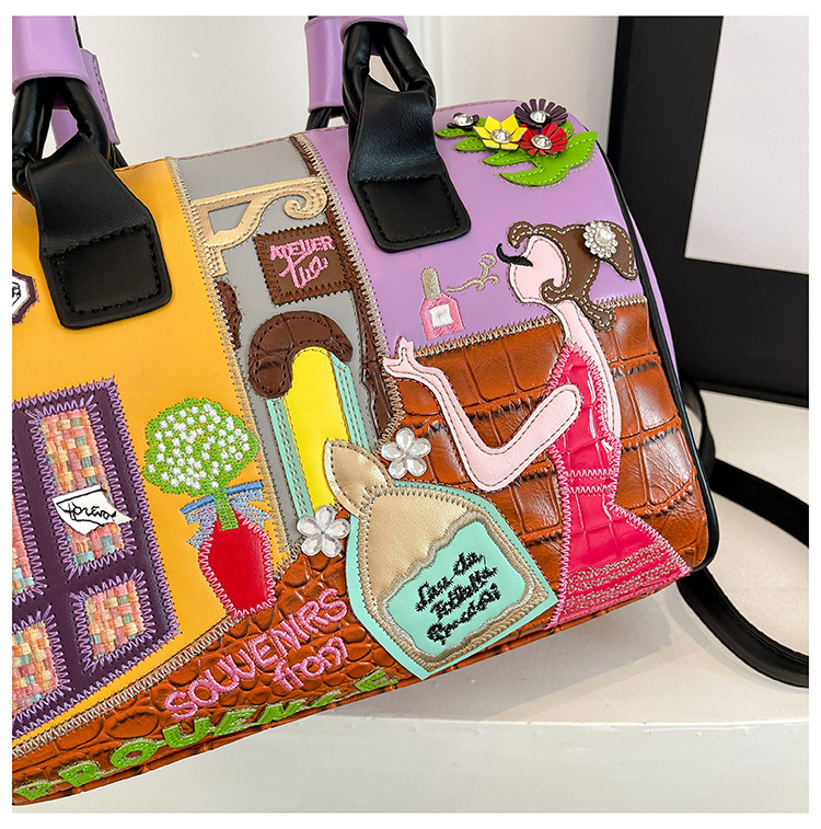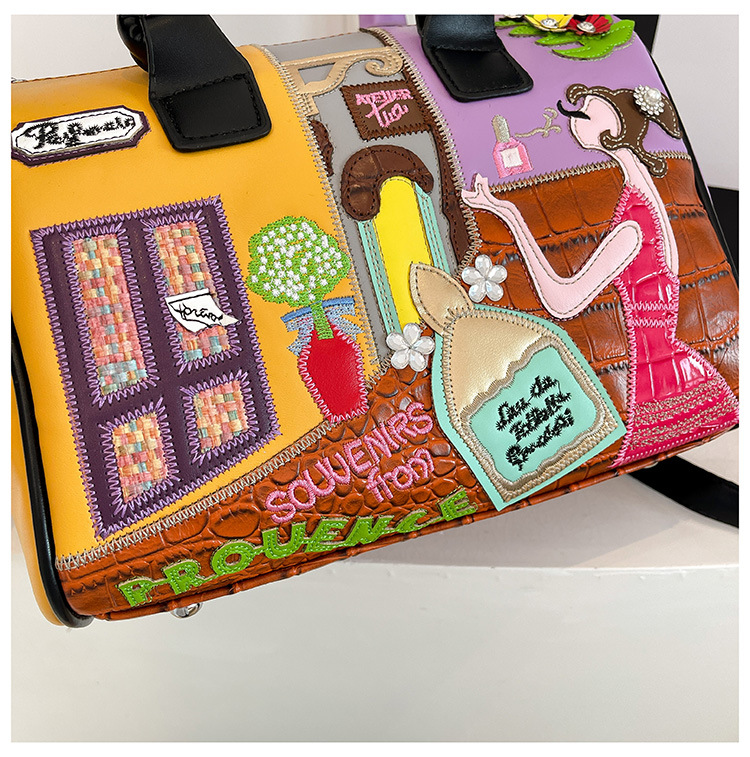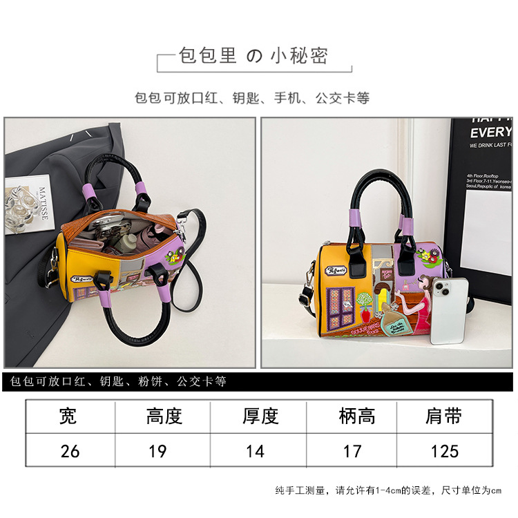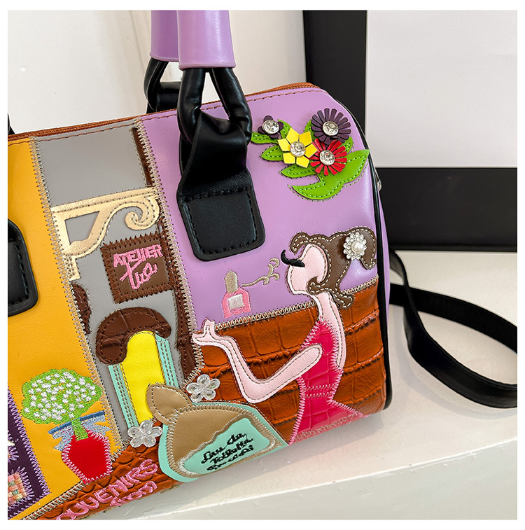 여성용 새 핸드백 자수 지퍼 배색 보스턴백 베개백 대용량 고급스러운 크로스백스토어 가기