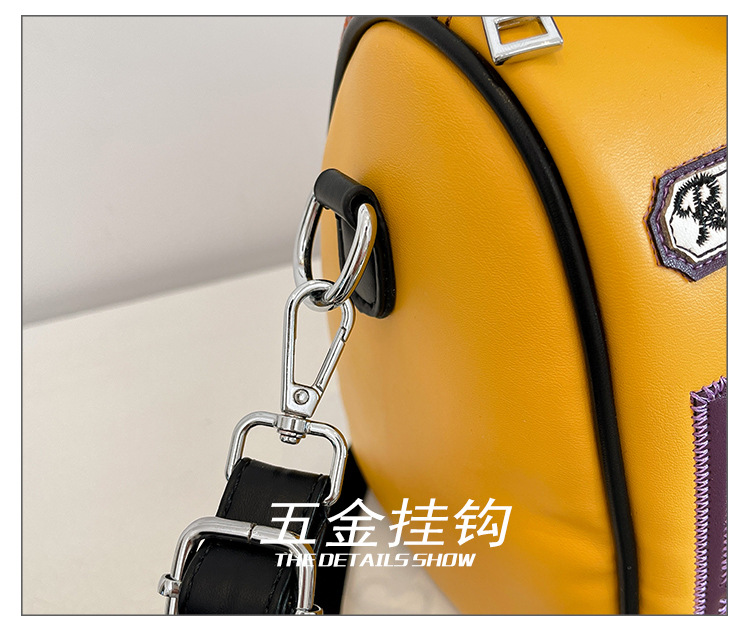 여성용 새 핸드백 자수 지퍼 배색 보스턴백 베개백 대용량 고급스러운 크로스백
