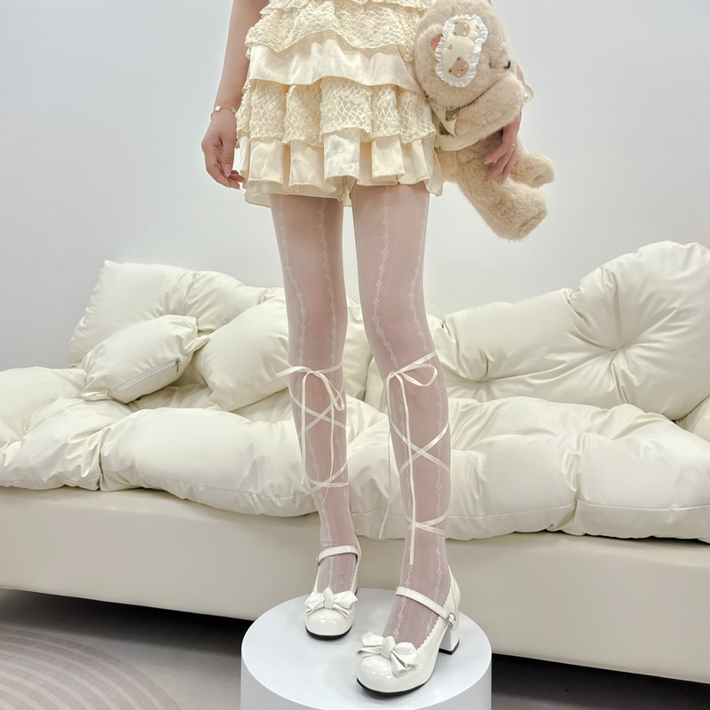 로리타 밀크 화이트 실크 스타킹 여성 여름 얇은 송아지 스트랩 블랙 실크 달콤한 쿨 스파이스 걸스 순수한 욕망 팬티 스타킹