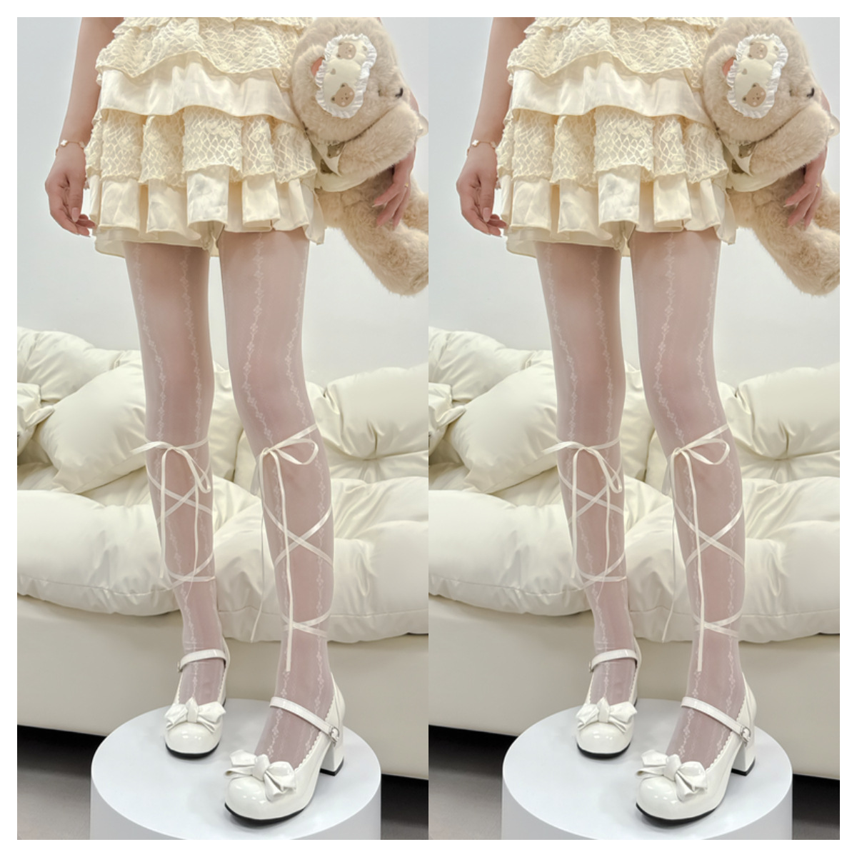 • [밀크화이트] 송아지 스트랩 스타킹 2/순수하고 달콤한 스타일