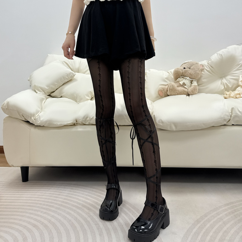 로리타 밀크 화이트 실크 스타킹 여성 여름 얇은 송아지 스트랩 블랙 실크 달콤한 쿨 스파이스 걸스 순수한 욕망 팬티 스타킹스토어 가기