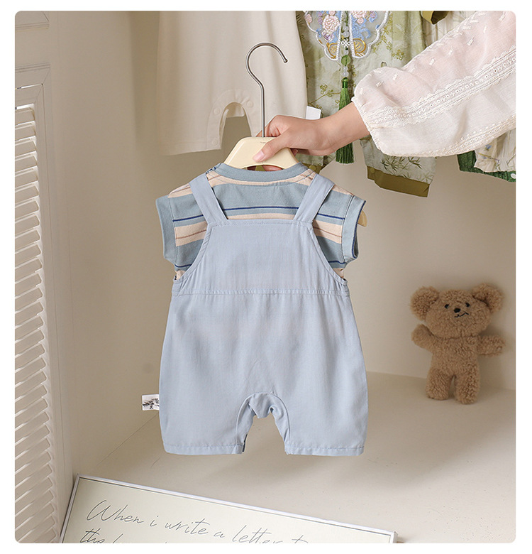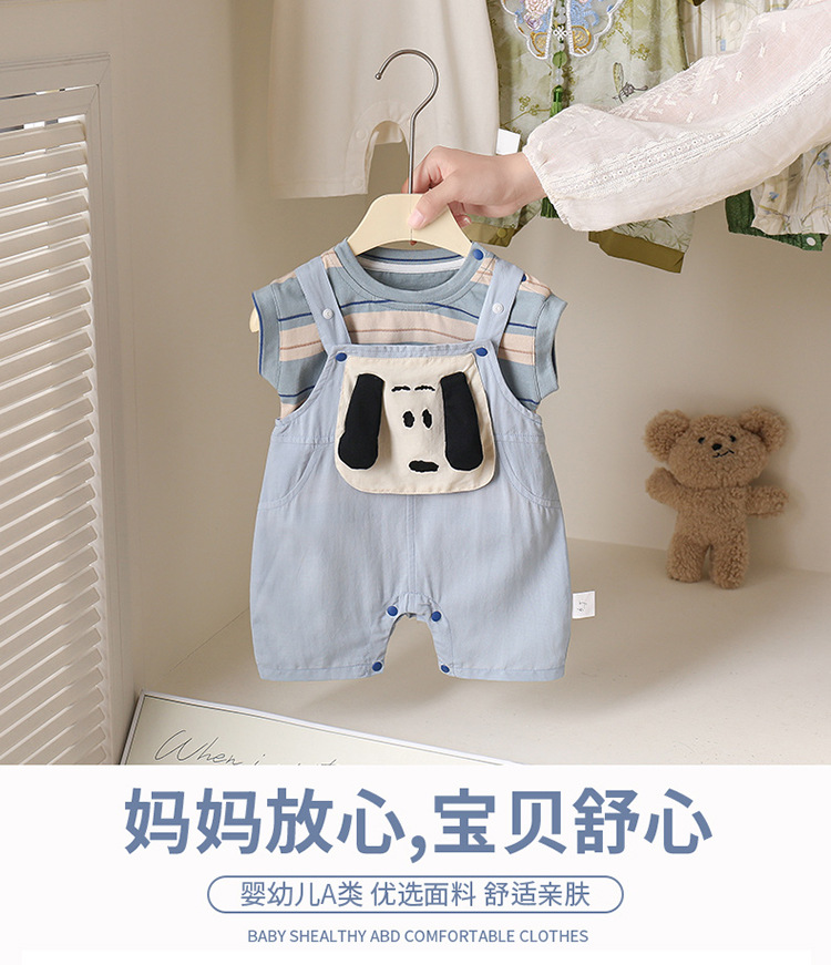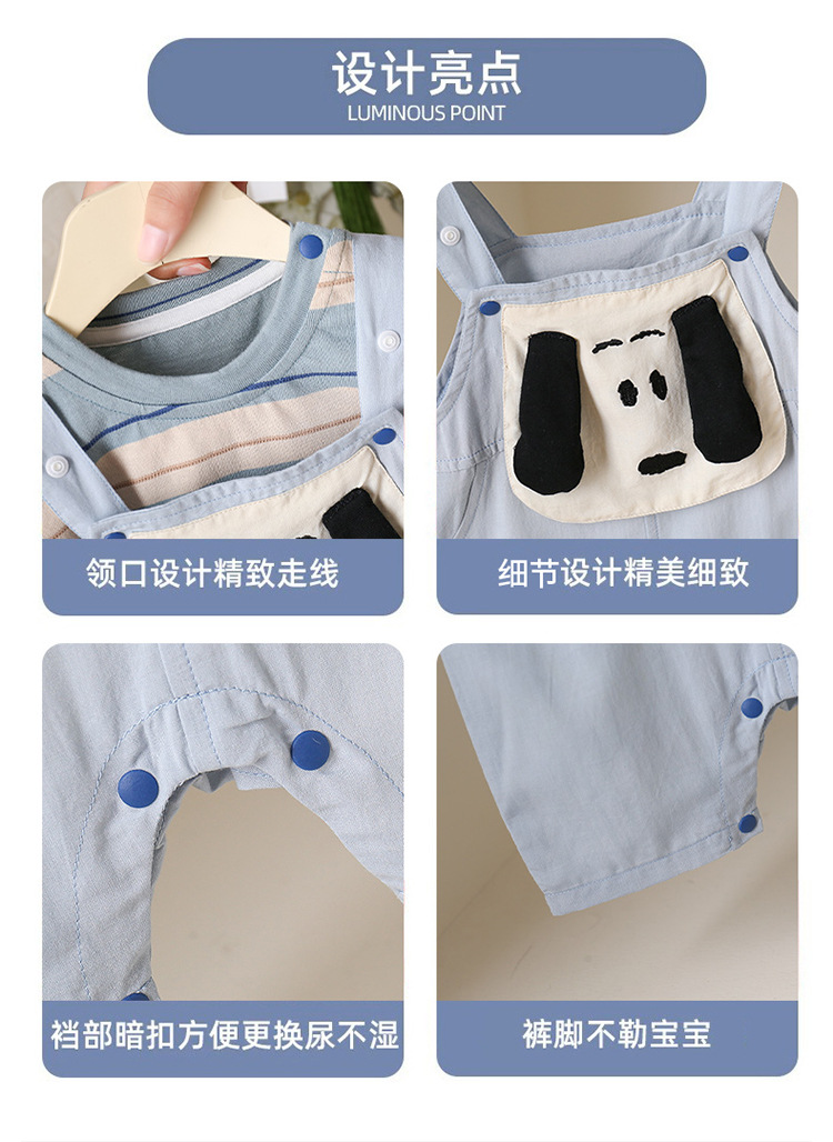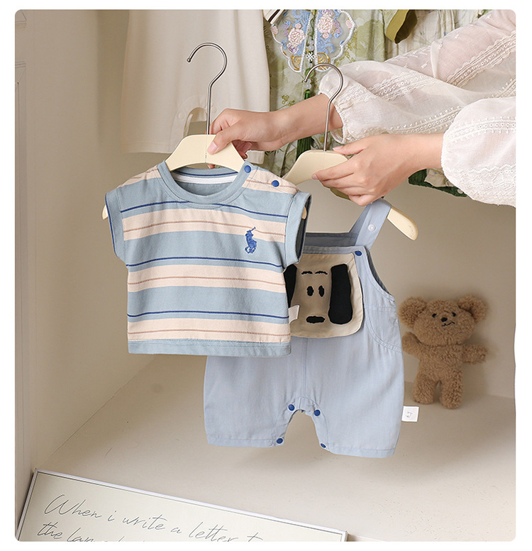 여름 새 아기 옷 아기 민소매 티셔츠 멜빵 두 조각 신생아 만화 얇은 세트 여름스토어 가기