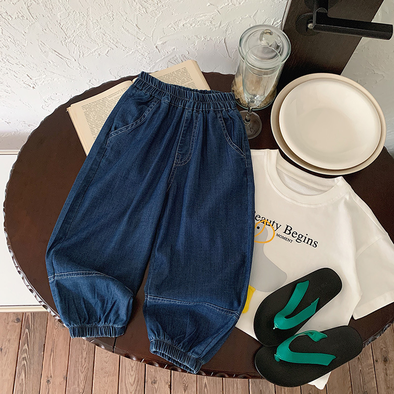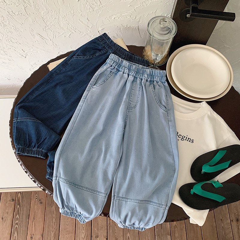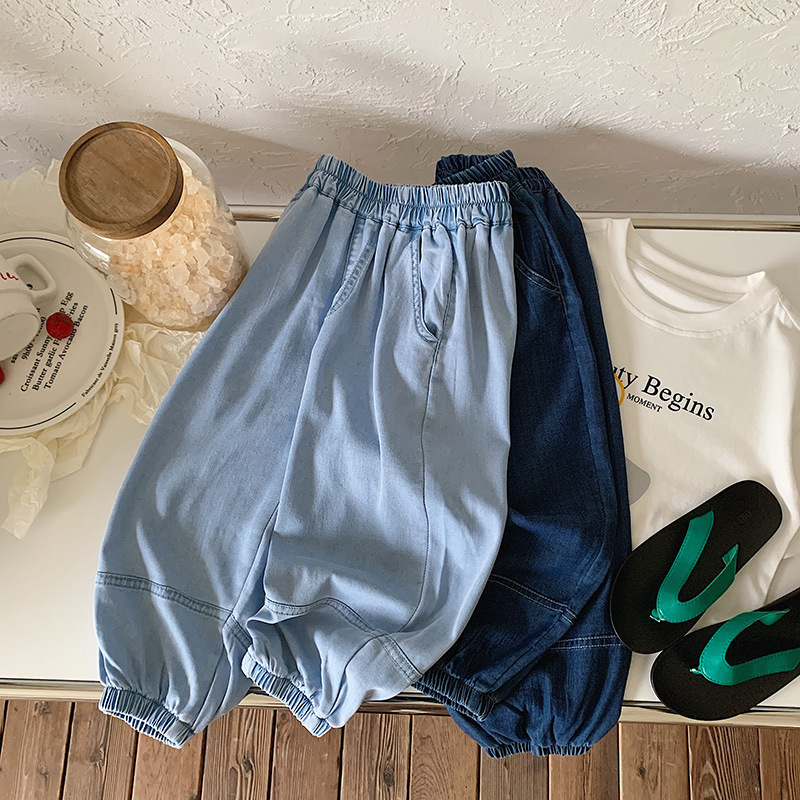 재고 텐셀 청바지 2025 여름 새 남녀 아동복 한국 안티 모기 바지 아기 올매치 경량 바지스토어 가기