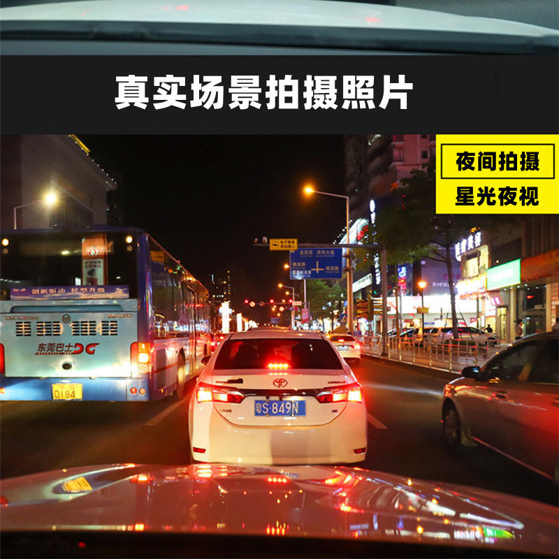 金边汽车载4.3寸后视镜行车记仪 跨境高清1080P夜视双录倒车影像