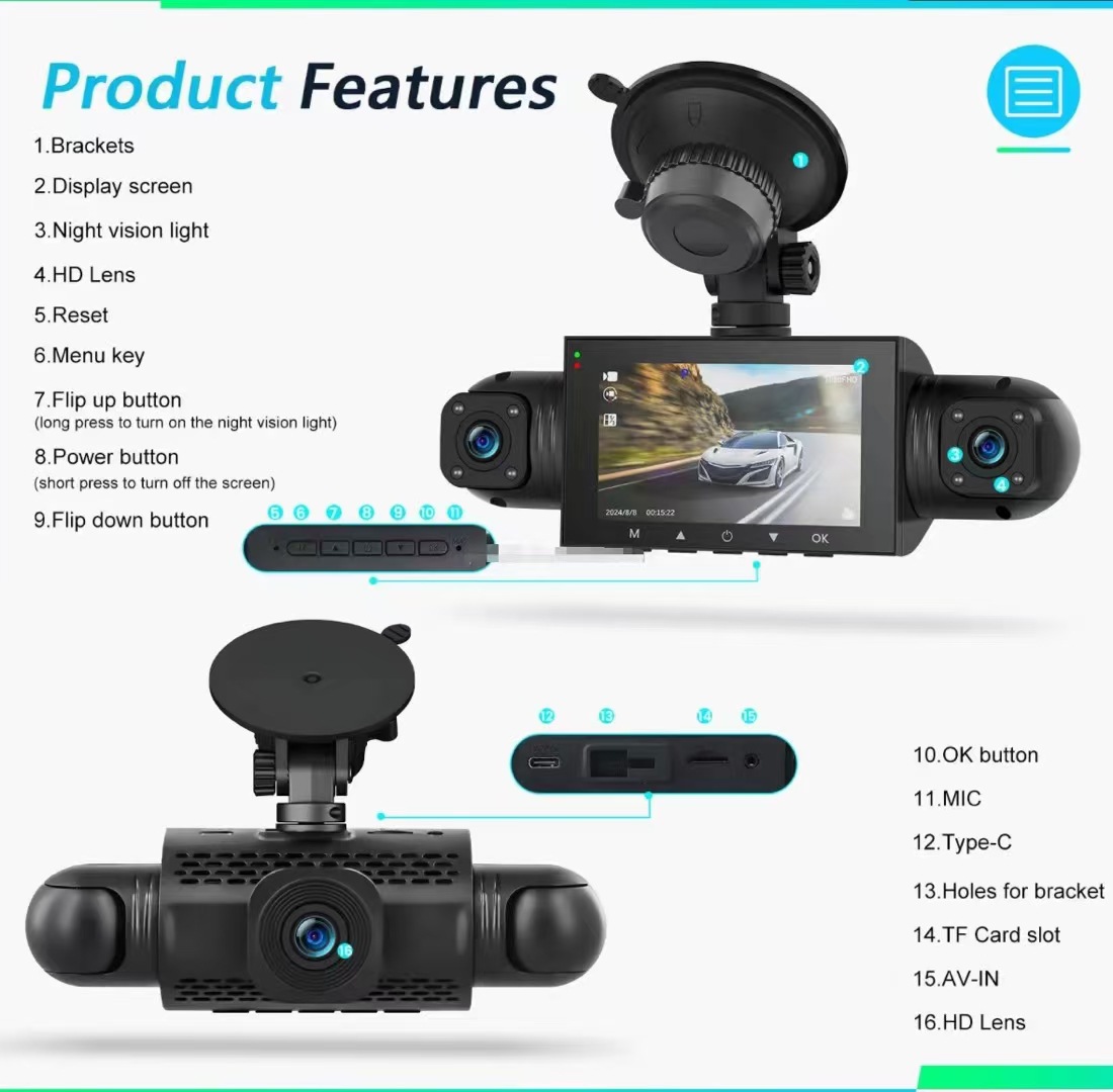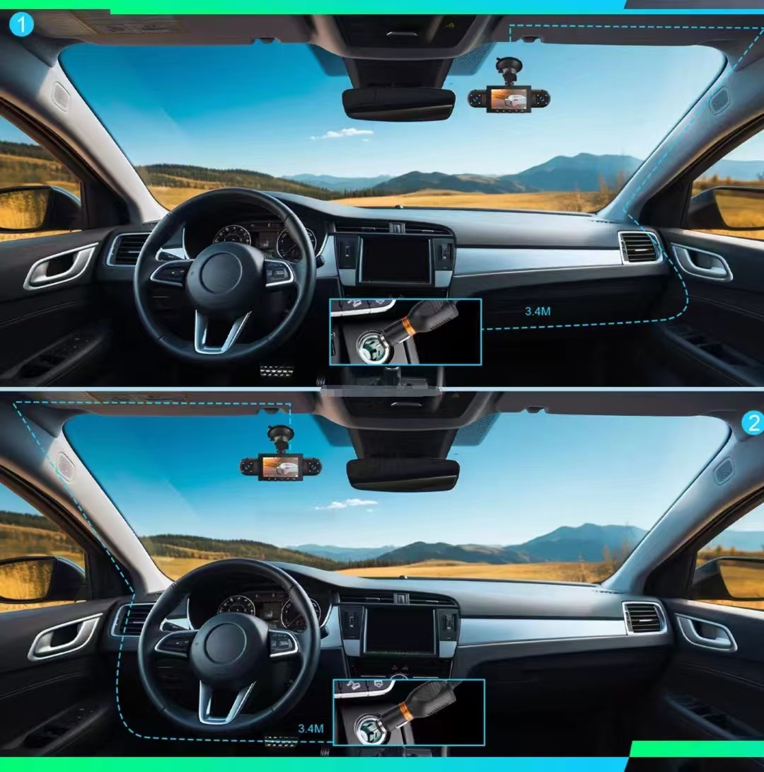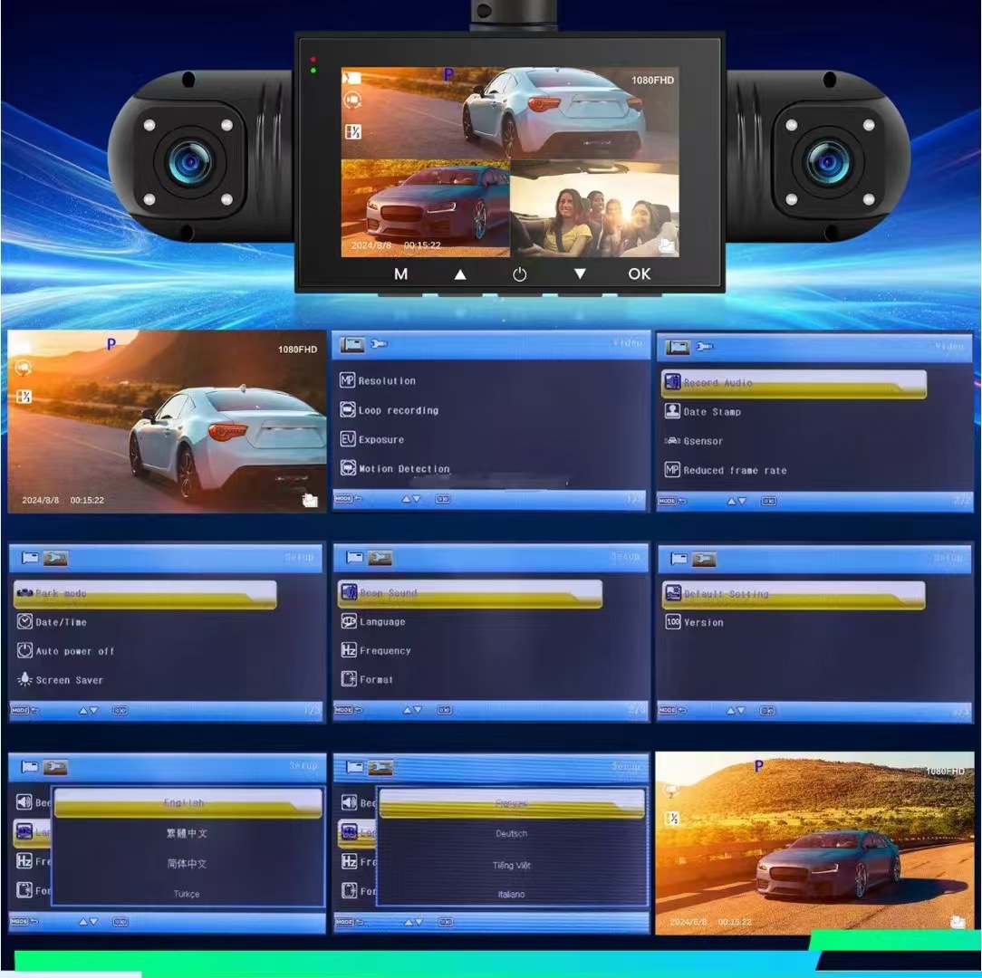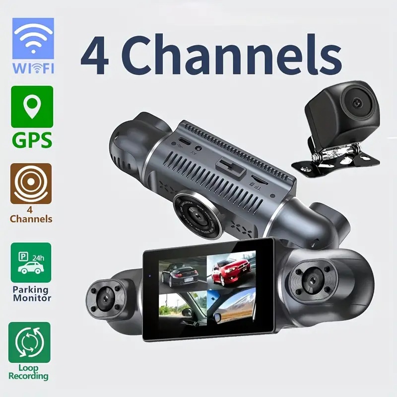 4路行车记录仪3寸高清1080P车内车外前后左右360°全景带wifi车载