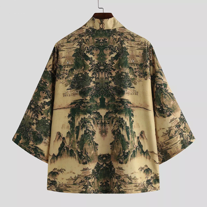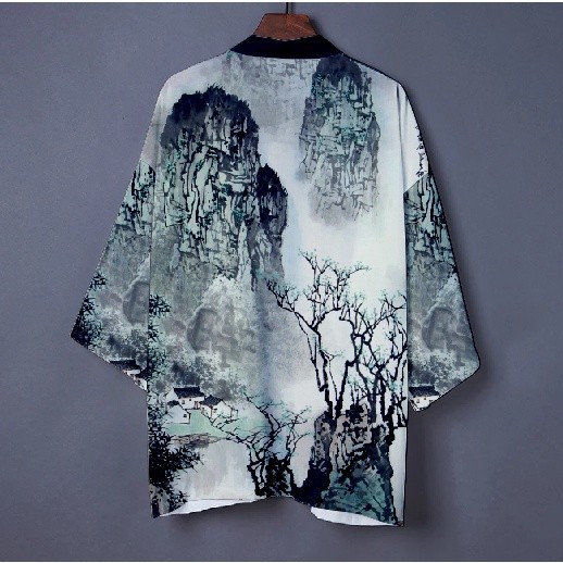 국경 간 2025 새로운 디지털 인쇄 풍경 일본식 기모노 망토 코트 가운 잠옷 카디건 여성용스토어 가기