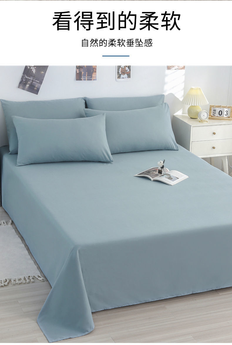 침대 시트는 심플한 스타일의 단색 싱글 피스 학생 기숙사로 사계절 사용 가능하며 보풀이 없고 알몸으로 잠을 잘 수 있습니다.스토어 가기