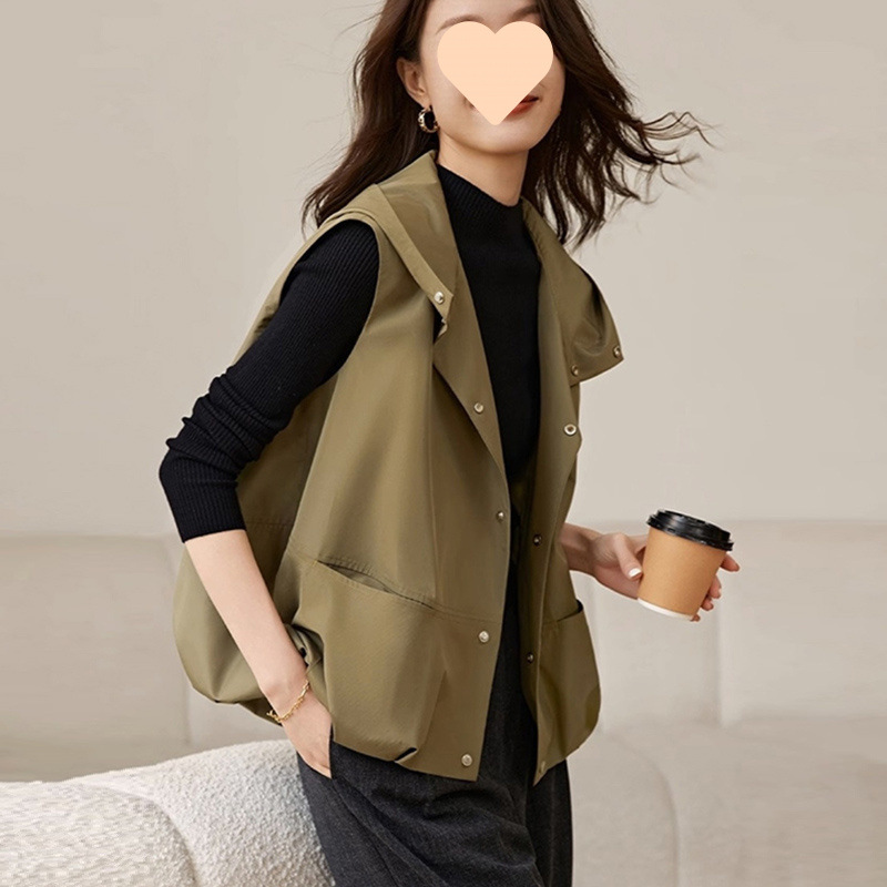 후드 조끼 여성 느슨한 2025 새로운 봄 스타일 양복 조끼 재킷 겉옷 민소매 얇은 재킷 탑스토어 가기