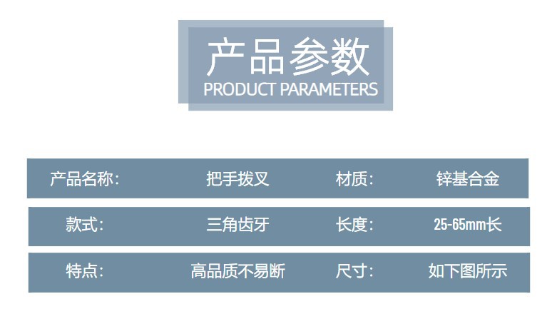• 삼각형 이빨, 중앙에 있는 사각형 포크 길이 25mm