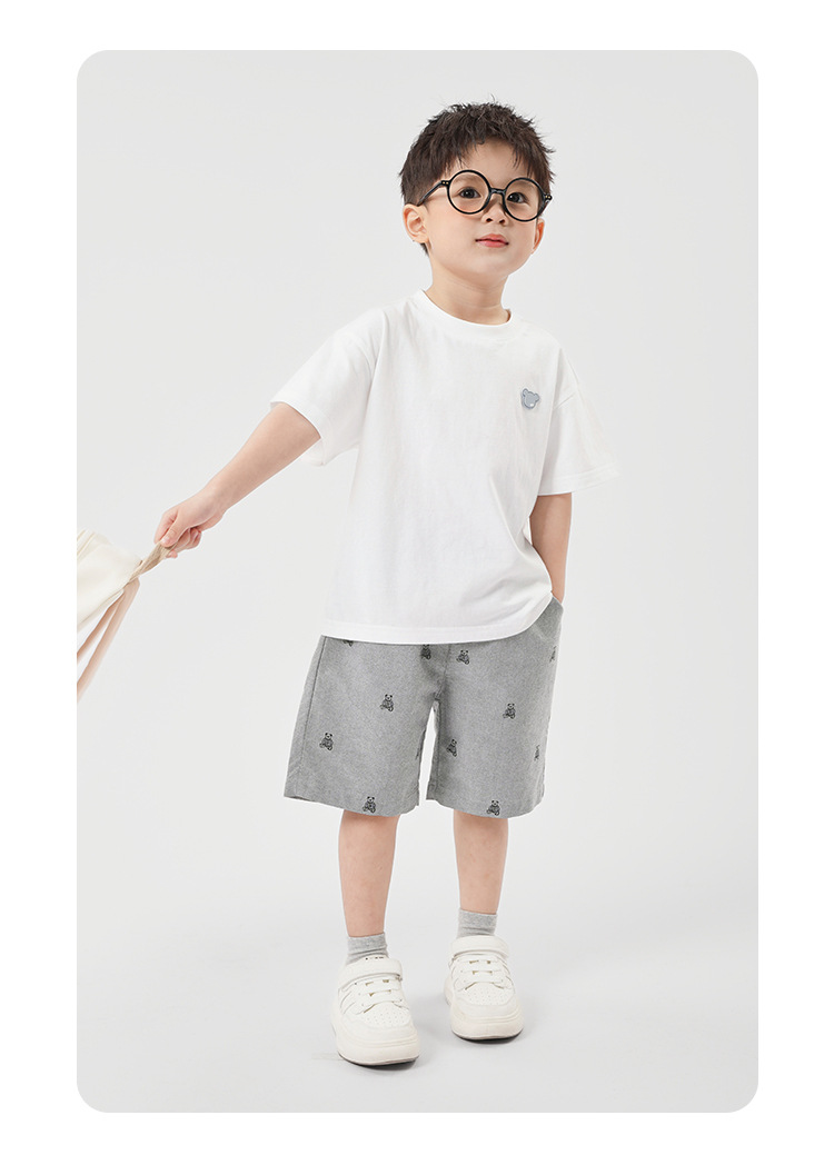 오른쪽 유럽 소년 반팔 티셔츠 2025 새로운 남성 보물 여름 어린이 착용 아기 어린이 자켓 여름 소년스토어 가기