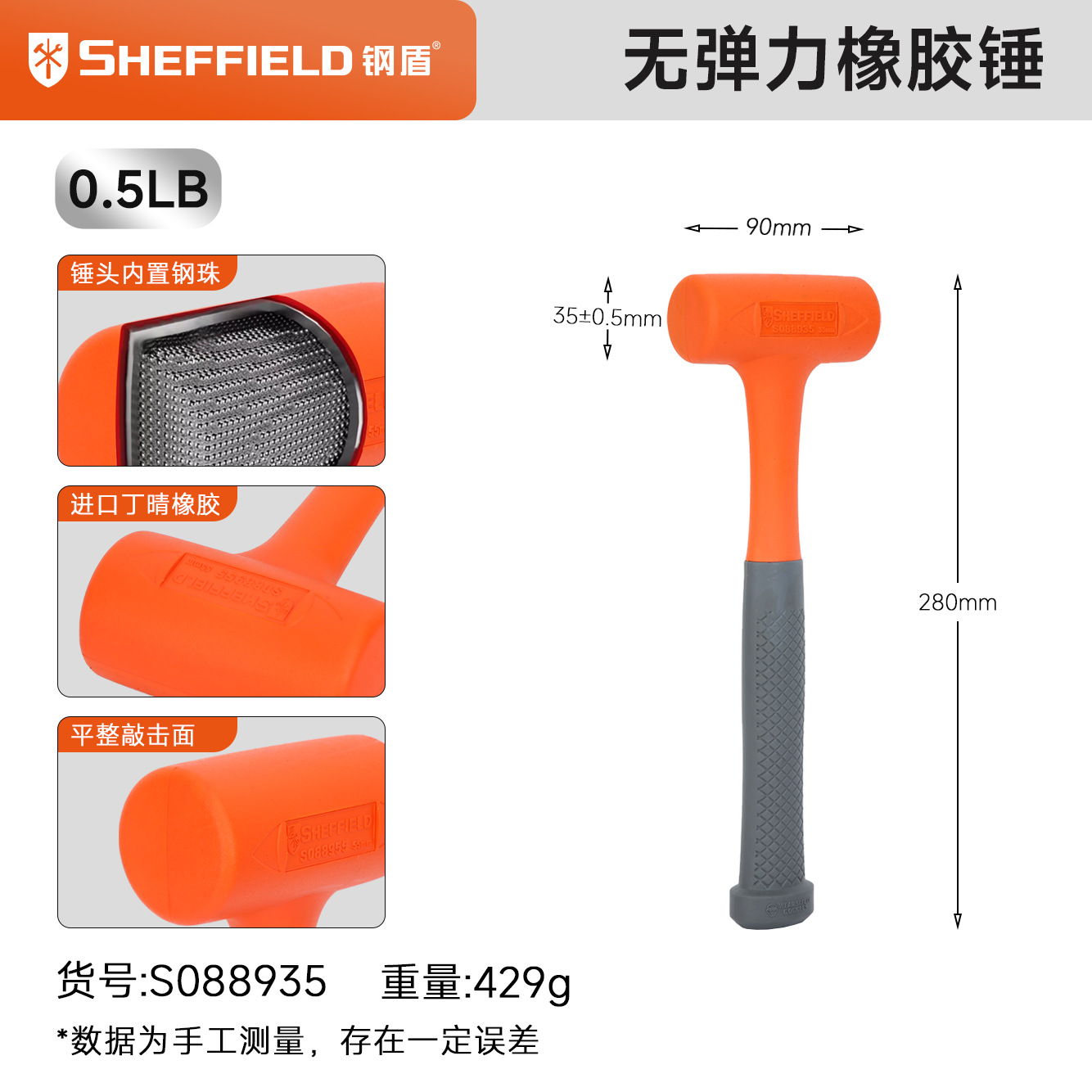 • 비탄성 충격 방지 고무 해머 0.5LB