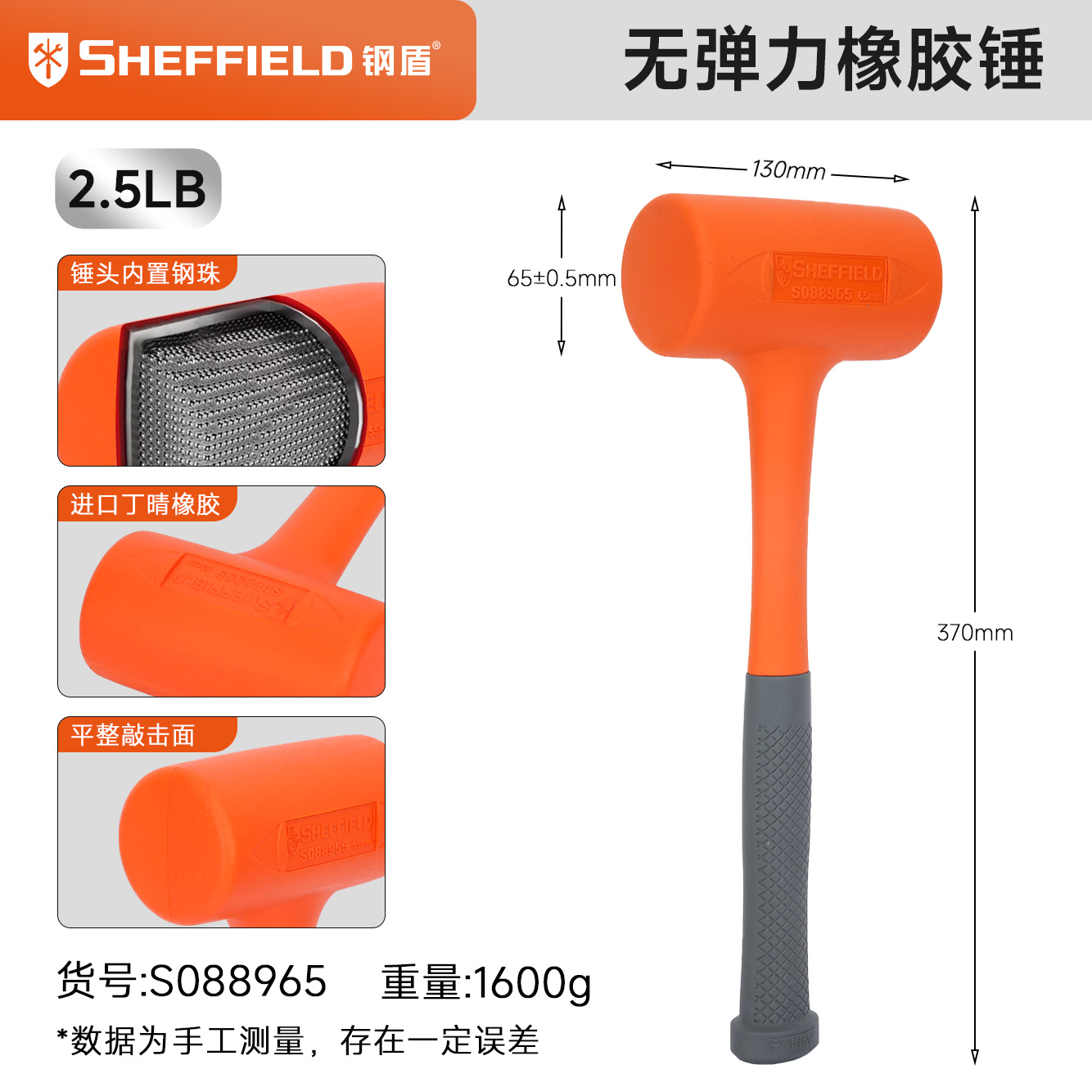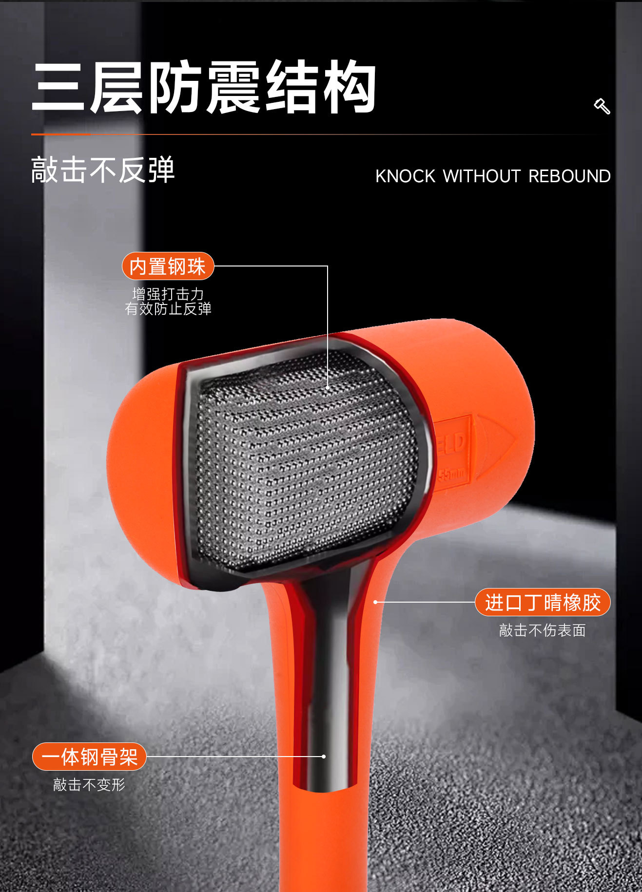 • 비탄성 충격 방지 고무 해머 2.5LB