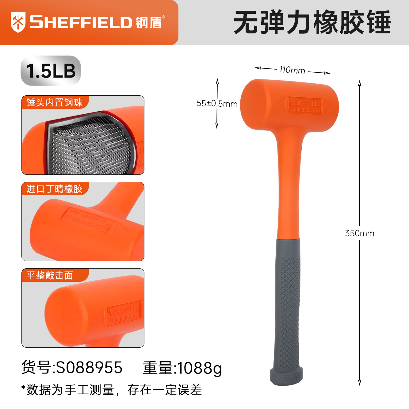 • 비탄성 충격 방지 고무 해머 1.5LB