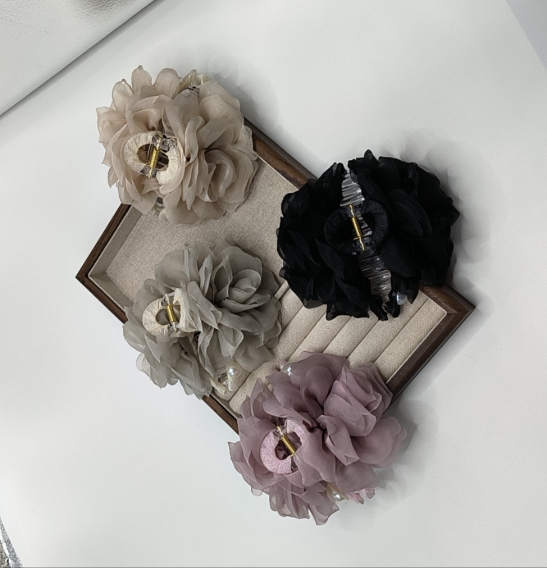 원사 센스 로즈 플라워 핸드 메이드 오간 원사 플라워 헤어 클립 달콤한 올 매치 헤어 상어 클립 헤어 액세서리 새로운 스타일