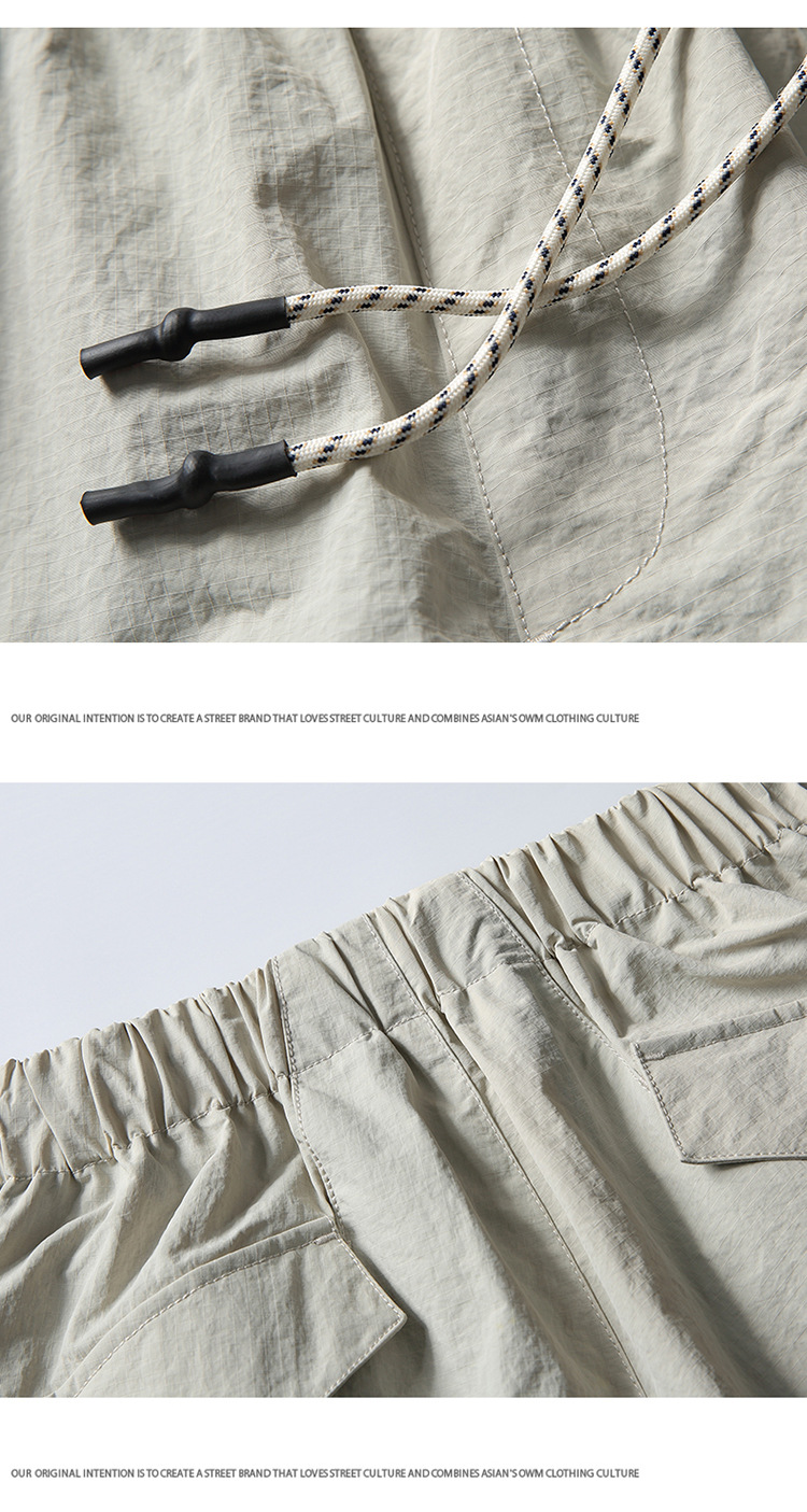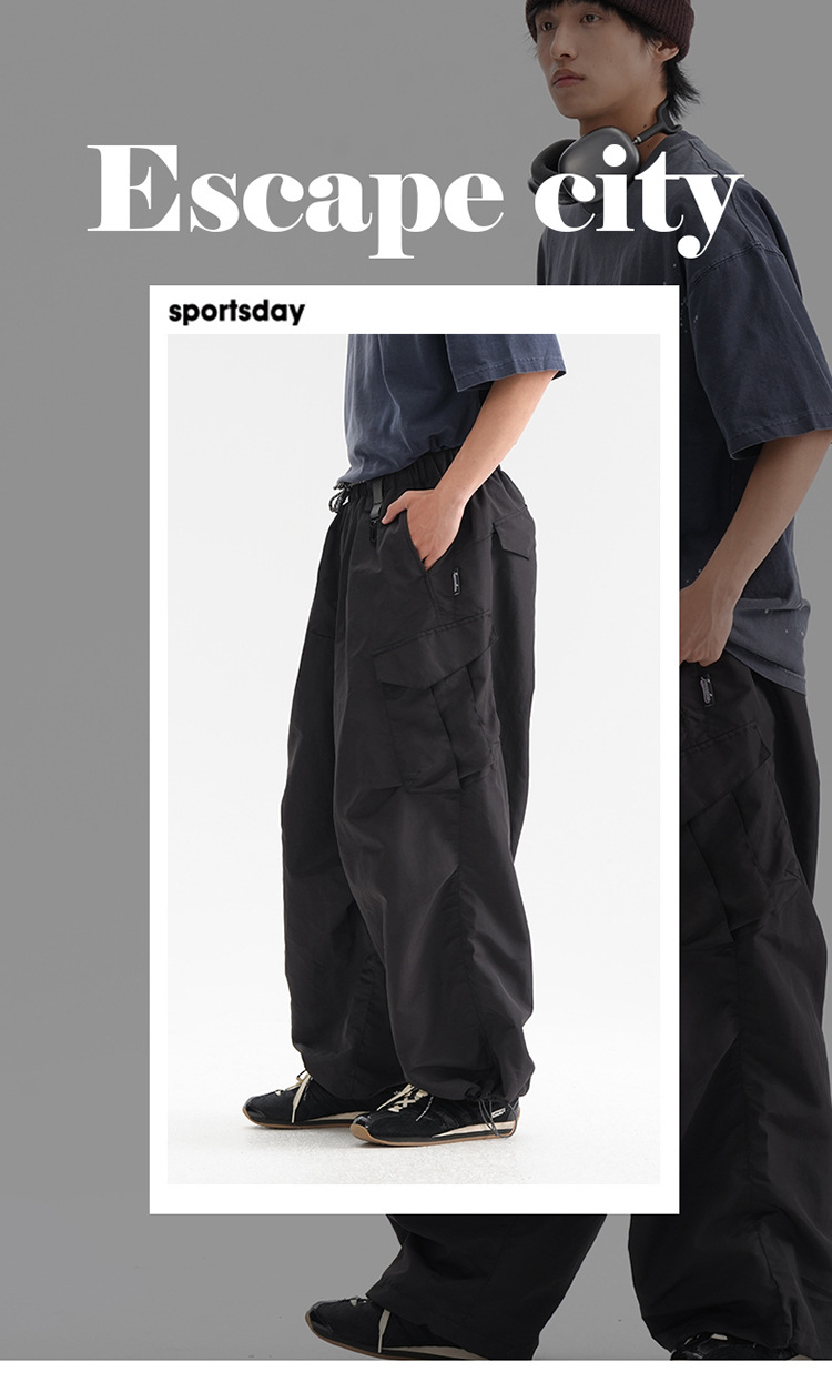 아메리칸 스타일 트렌디 브랜드 멀티 포켓 드로우 스트링 빠른 건조 낙하산 바지 남성 여름 야외 느슨한 와이드 레그 커플의 캐주얼 충전 바지스토어 가기