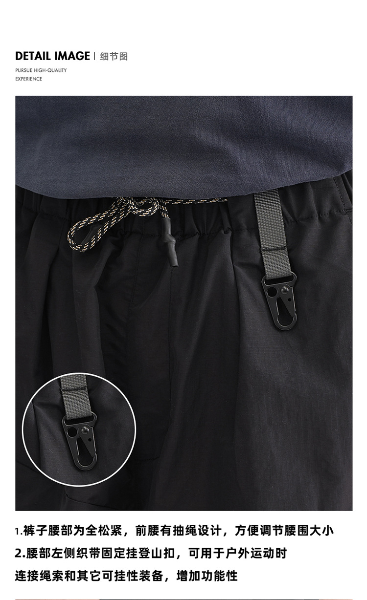 아메리칸 스타일 트렌디 브랜드 멀티 포켓 드로우 스트링 빠른 건조 낙하산 바지 남성 여름 야외 느슨한 와이드 레그 커플의 캐주얼 충전 바지