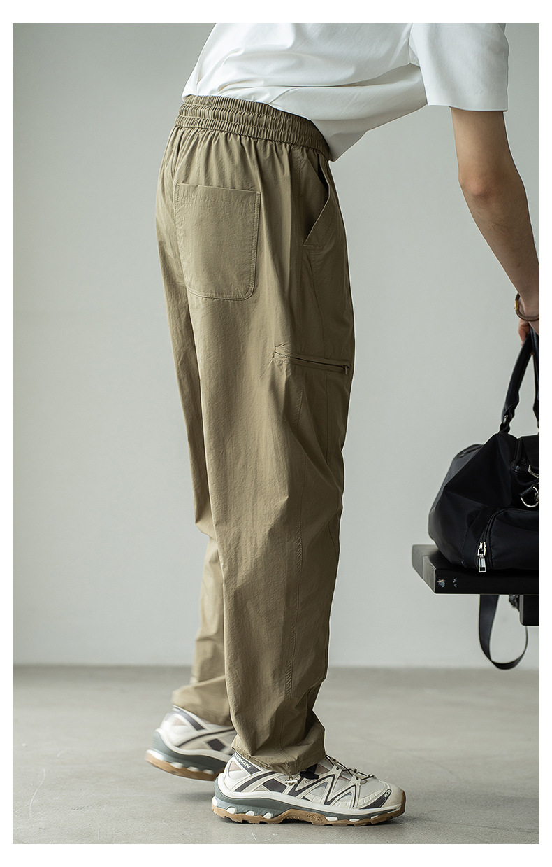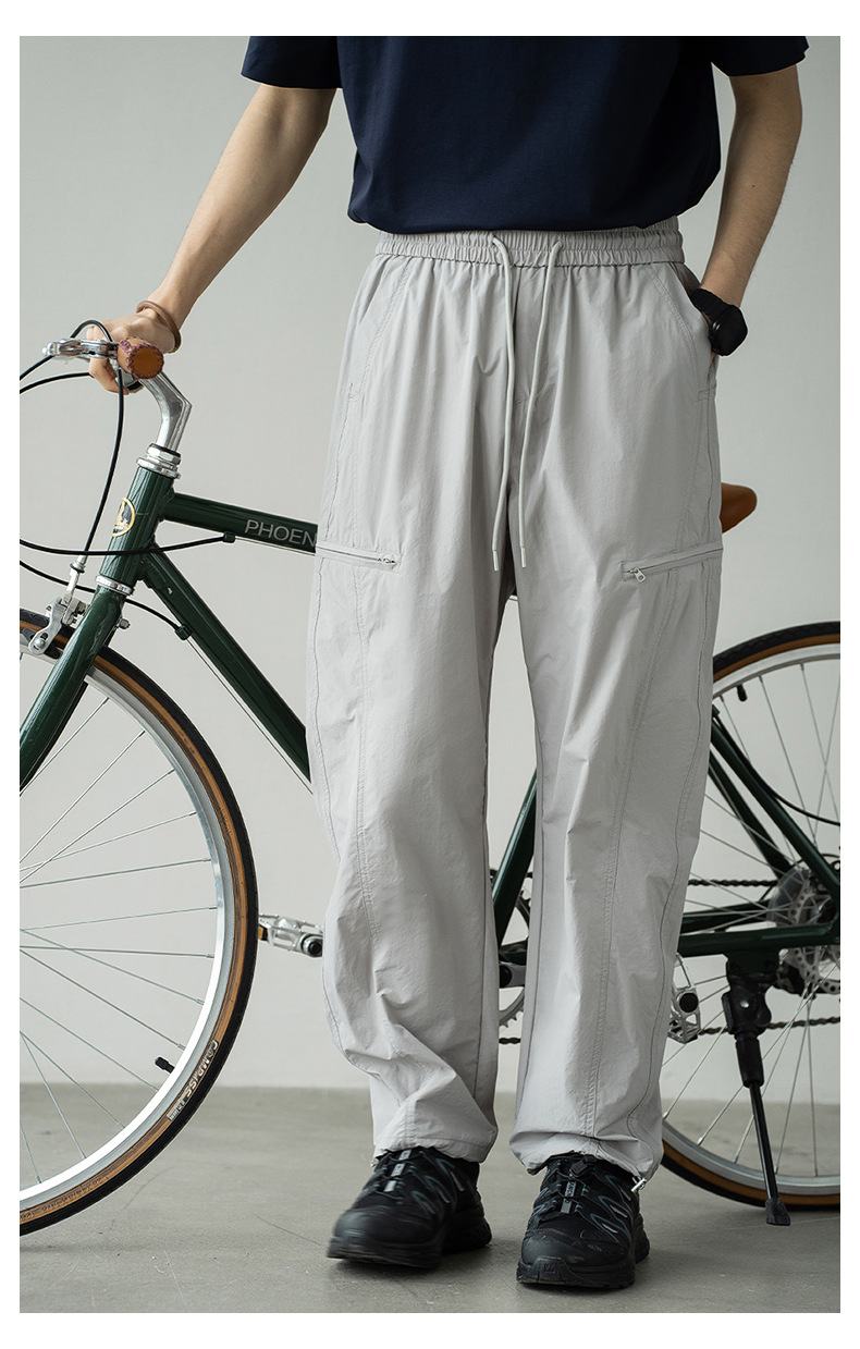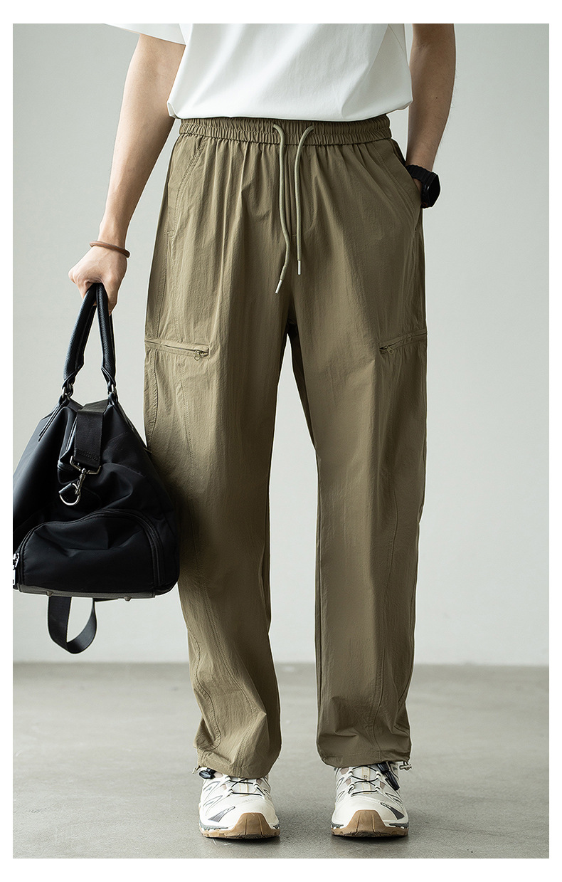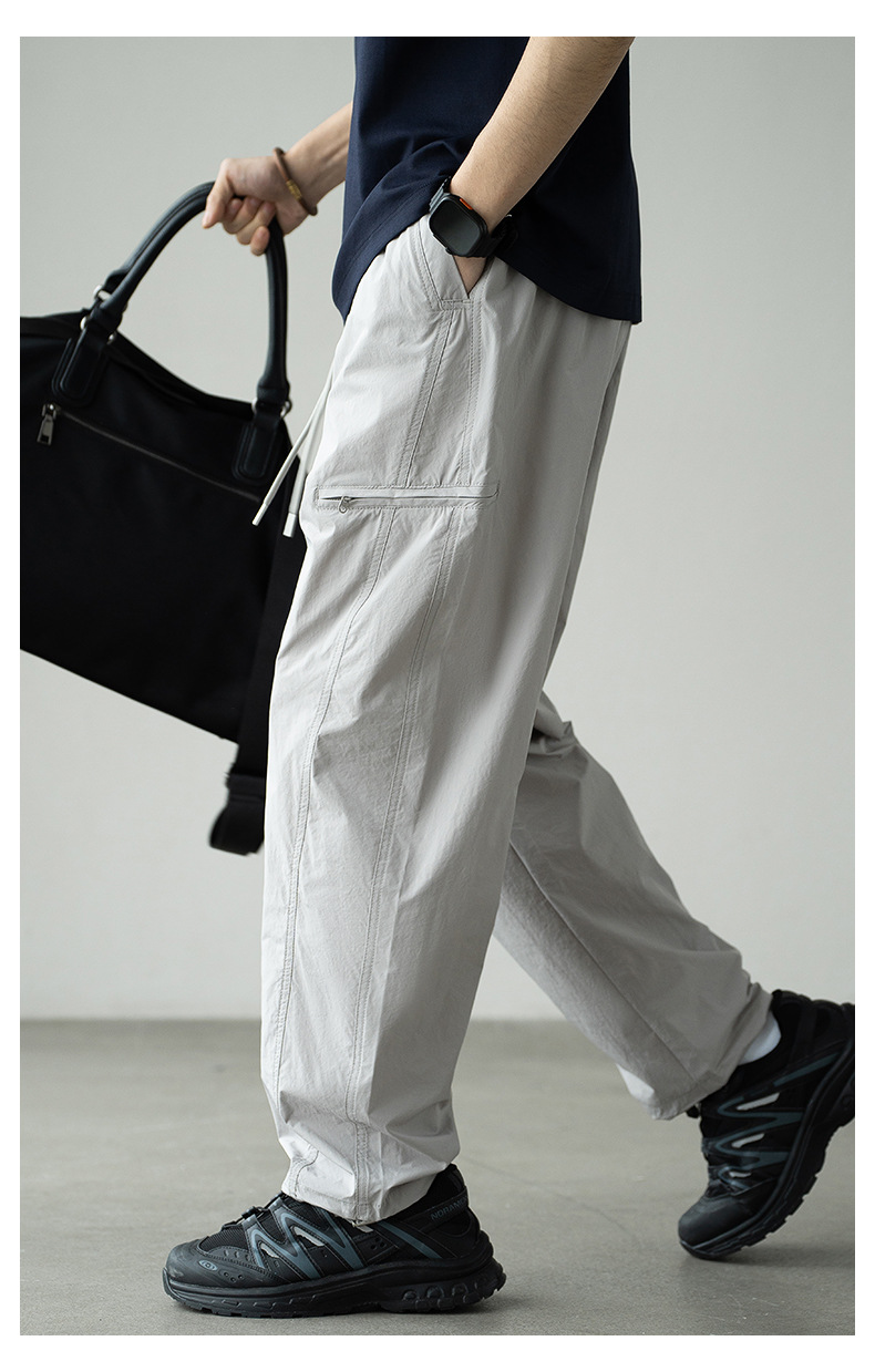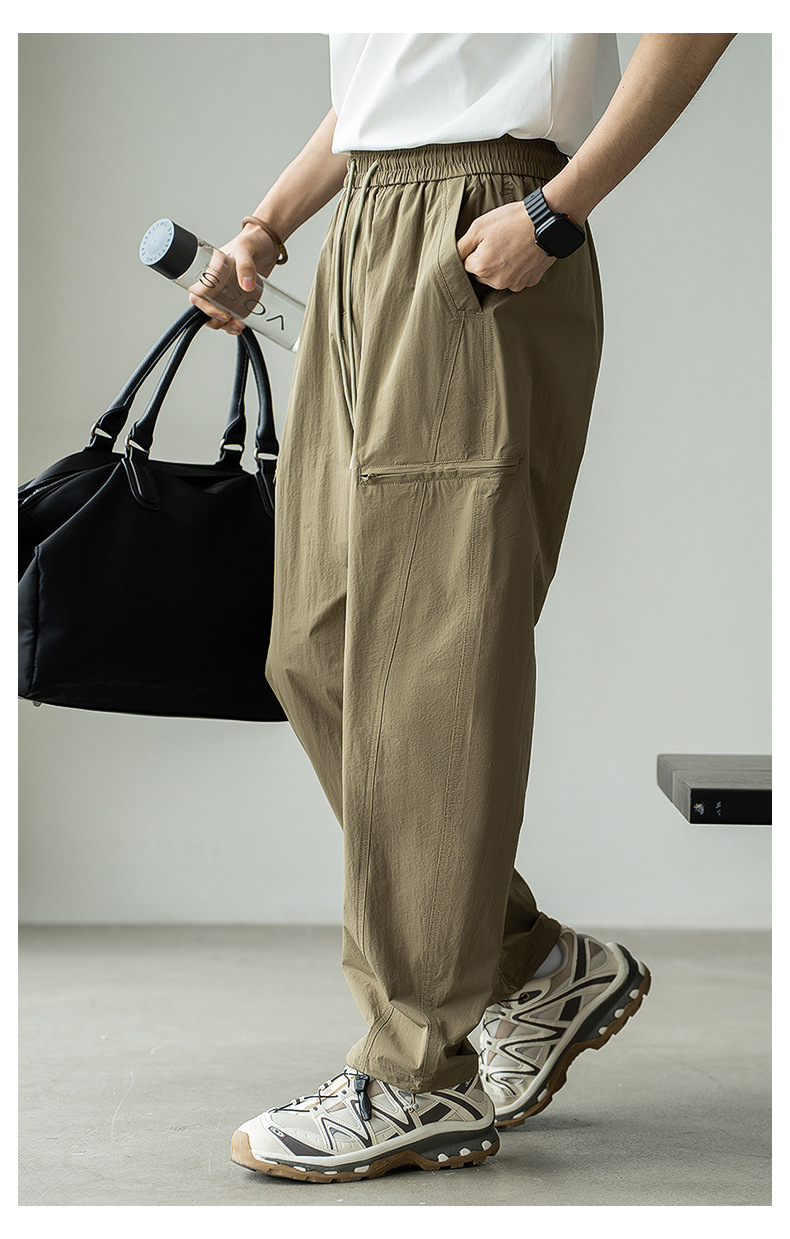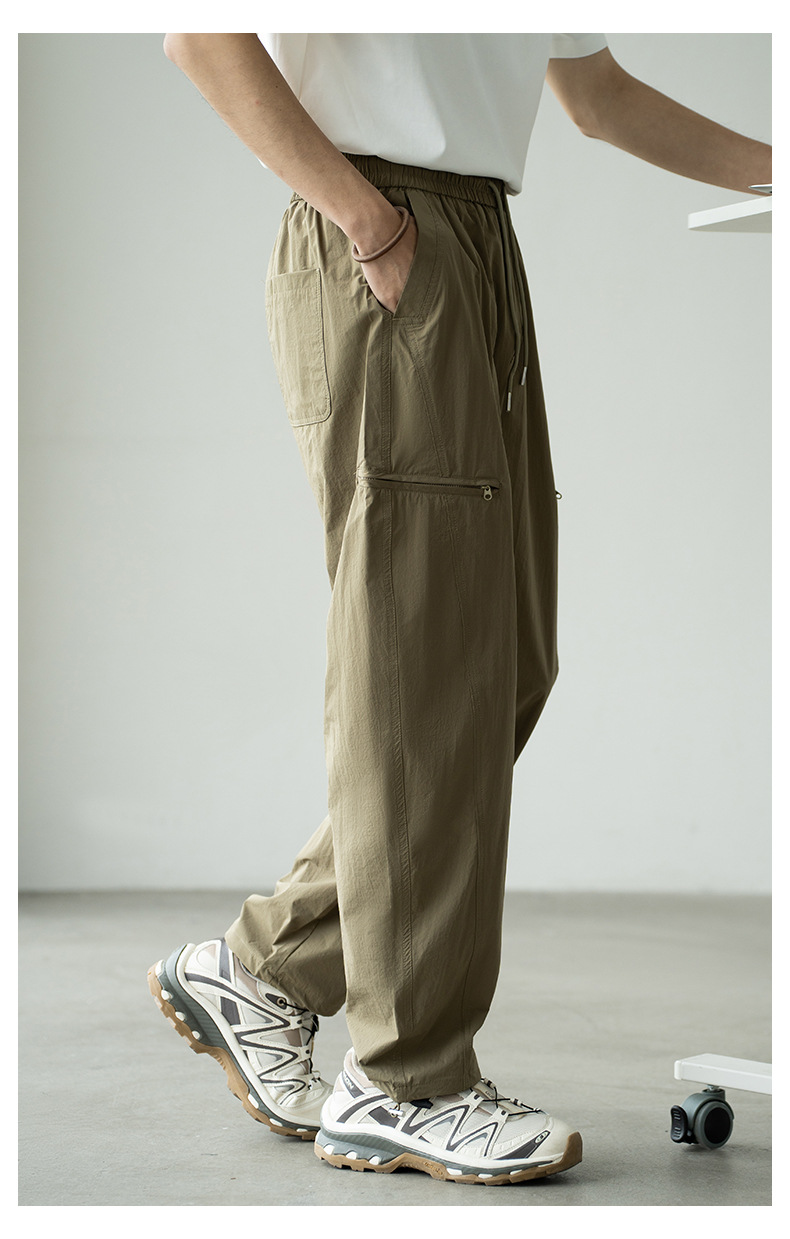 기능성 바람 수직 컷 포켓 등산 작업복 남성 2025 년 여름 새로운 야외 스포츠 빠른 건조 아이스 실크 남성용 바지