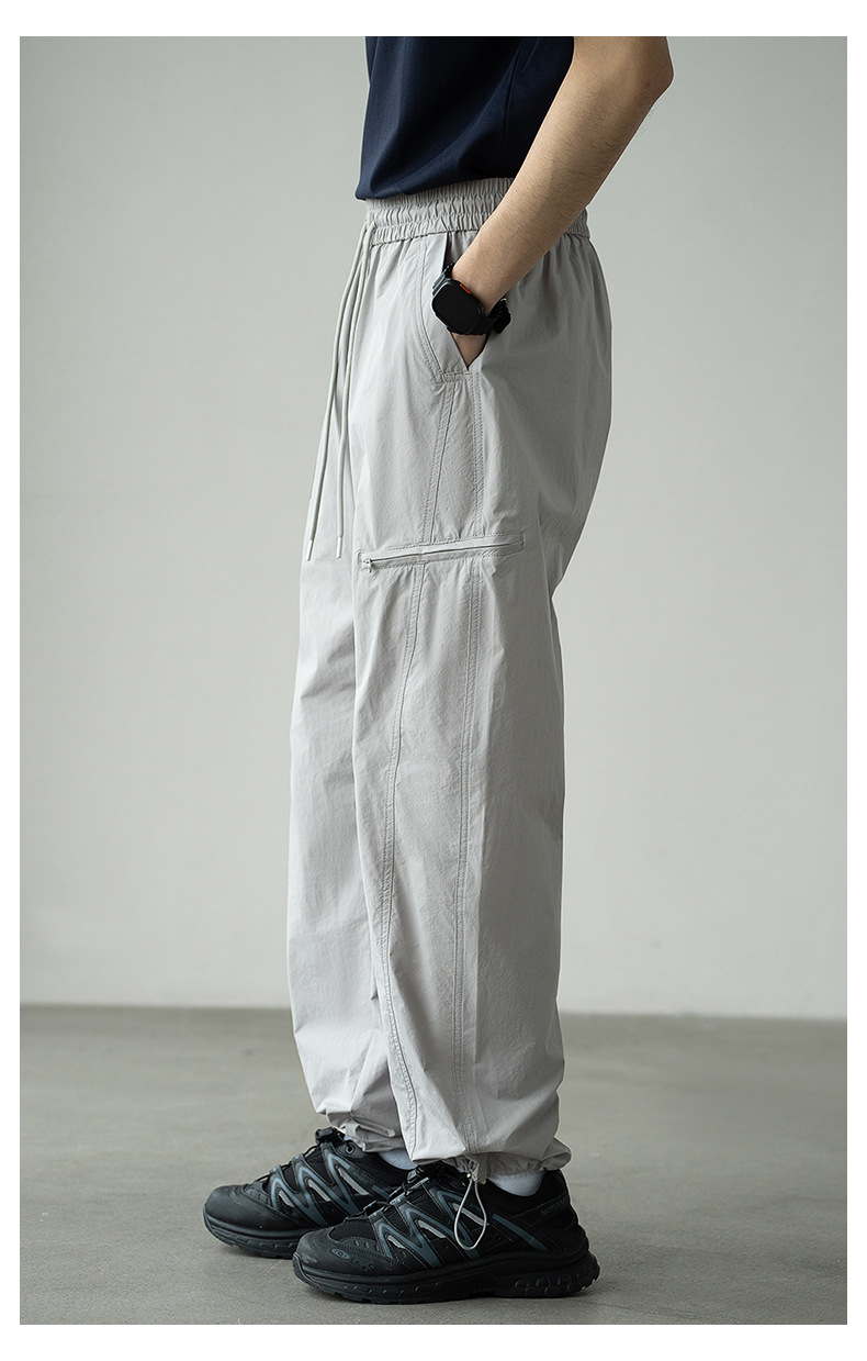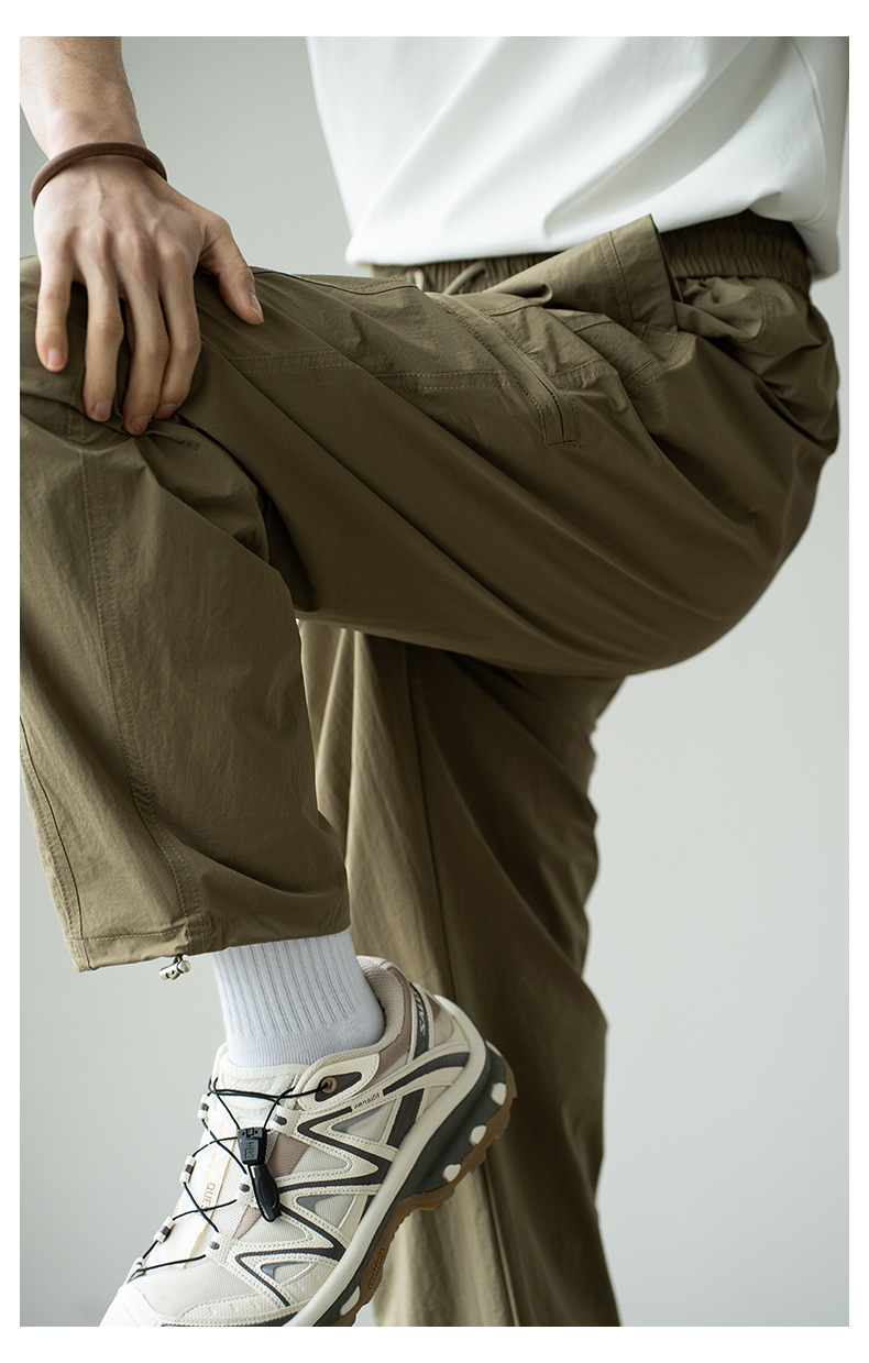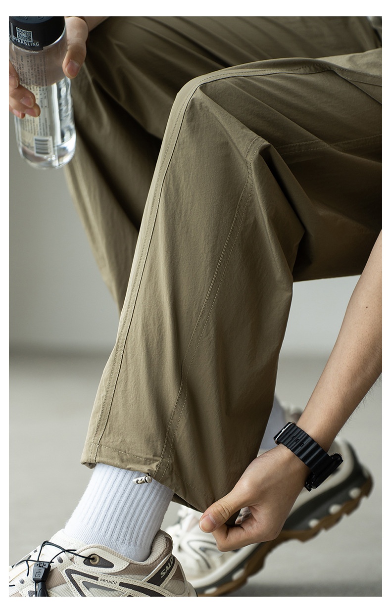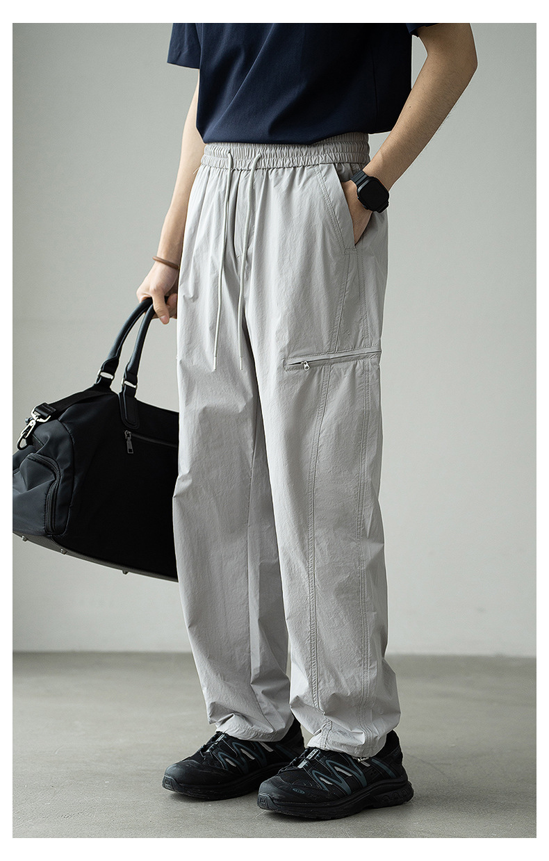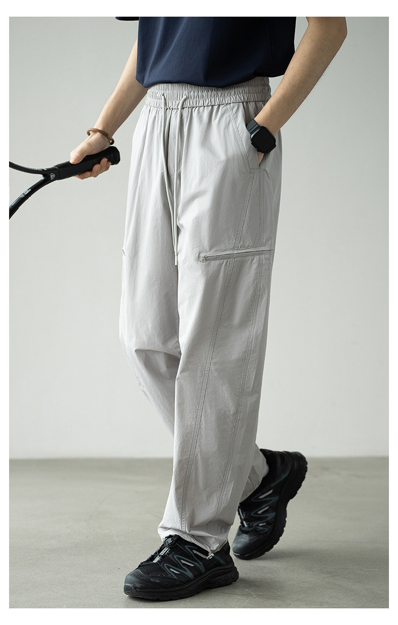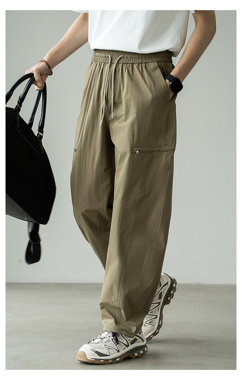 기능성 바람 수직 컷 포켓 등산 작업복 남성 2025 년 여름 새로운 야외 스포츠 빠른 건조 아이스 실크 남성용 바지