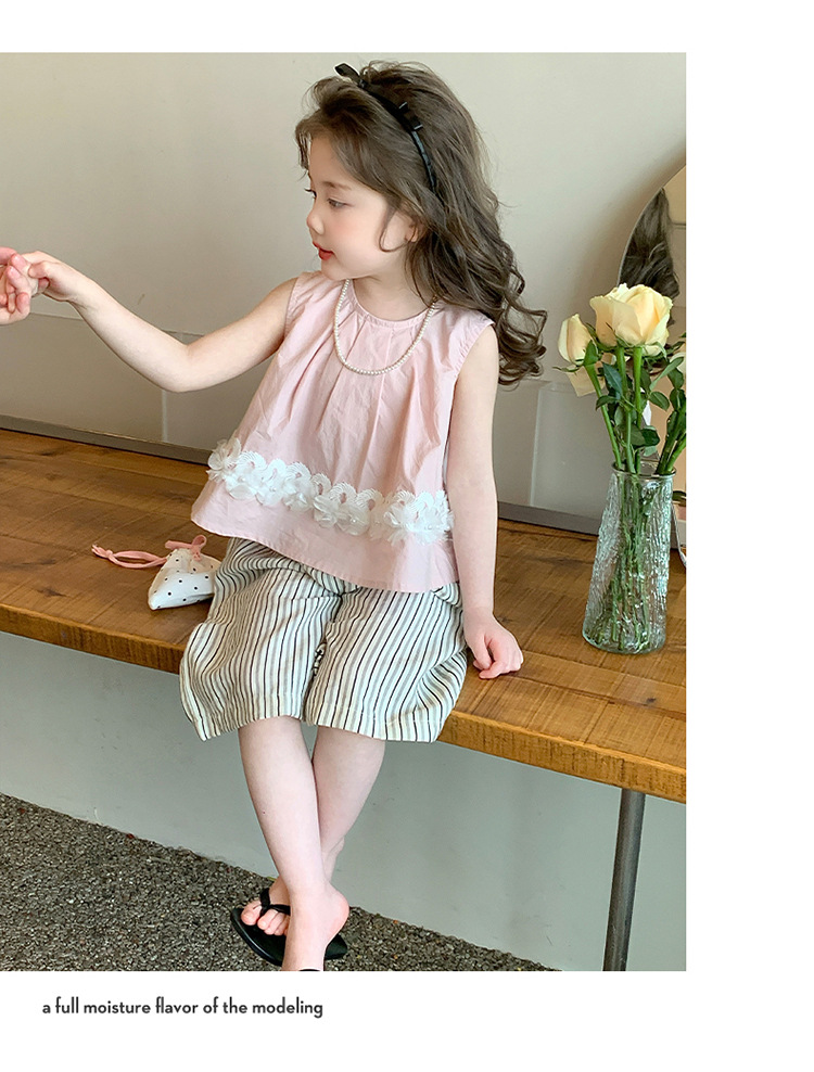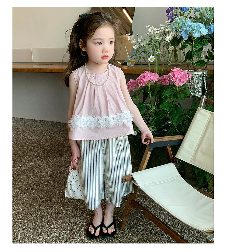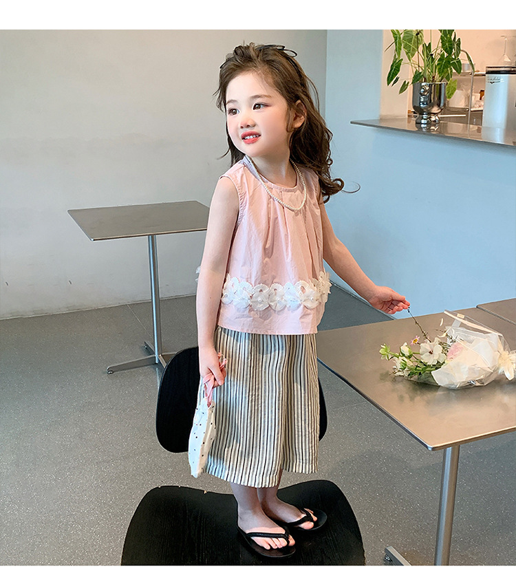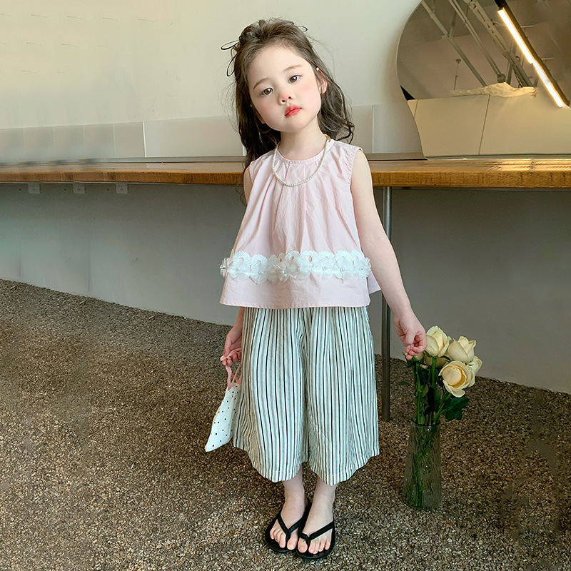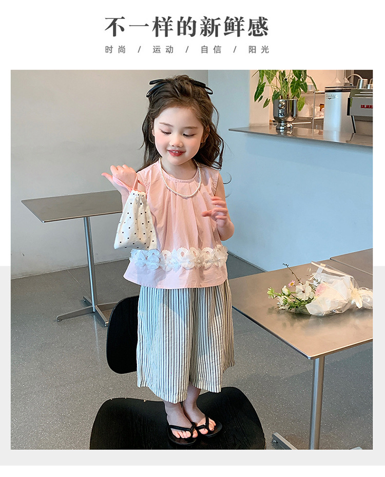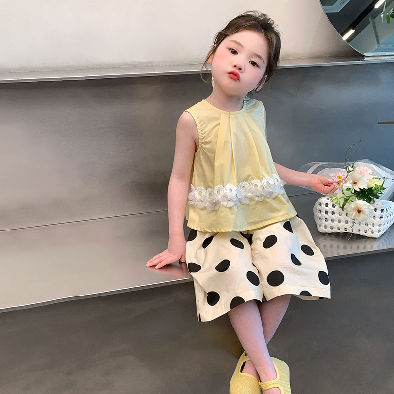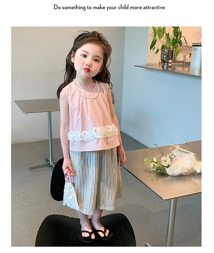 소녀 펄 레이스 세트 2025 여름 새로운 패션 소녀 세련된 투피스 세트 어린이 여름 원피스스토어 가기