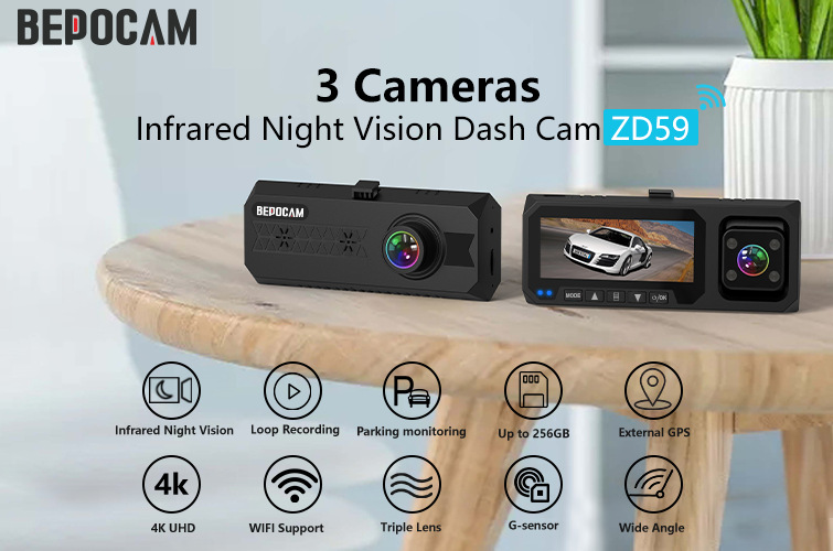운전 기록 장치 HD 2k 전면 및 후면 3개 녹화 WiFi 주차 파노라마 GPS 야간 투시경 감시 대시캠 카메라스토어 가기
