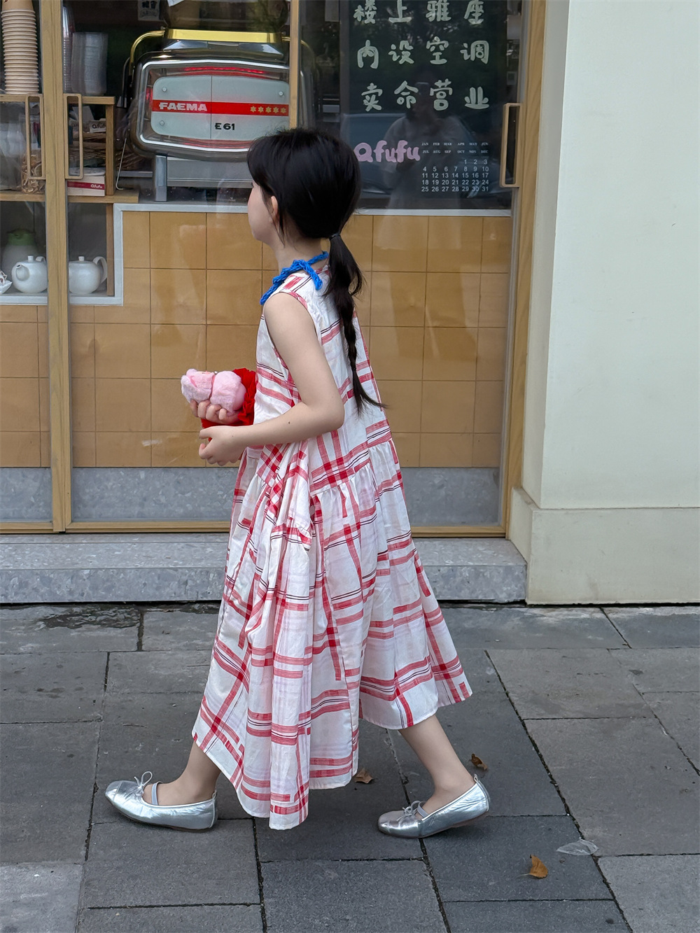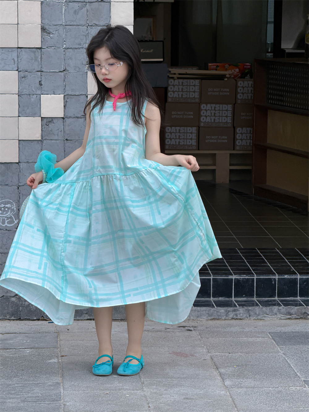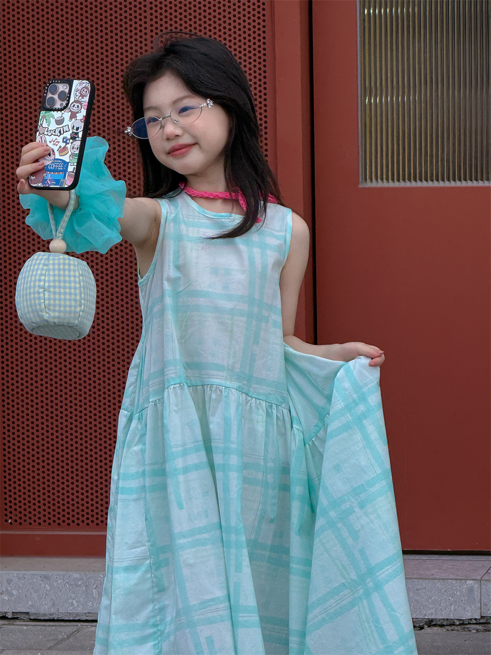 꽃과 추구 어린이 의류 소녀 2025 원피스 여름 새로운 격자 무늬 공주 원피스 어린이 유행 치마스토어 가기