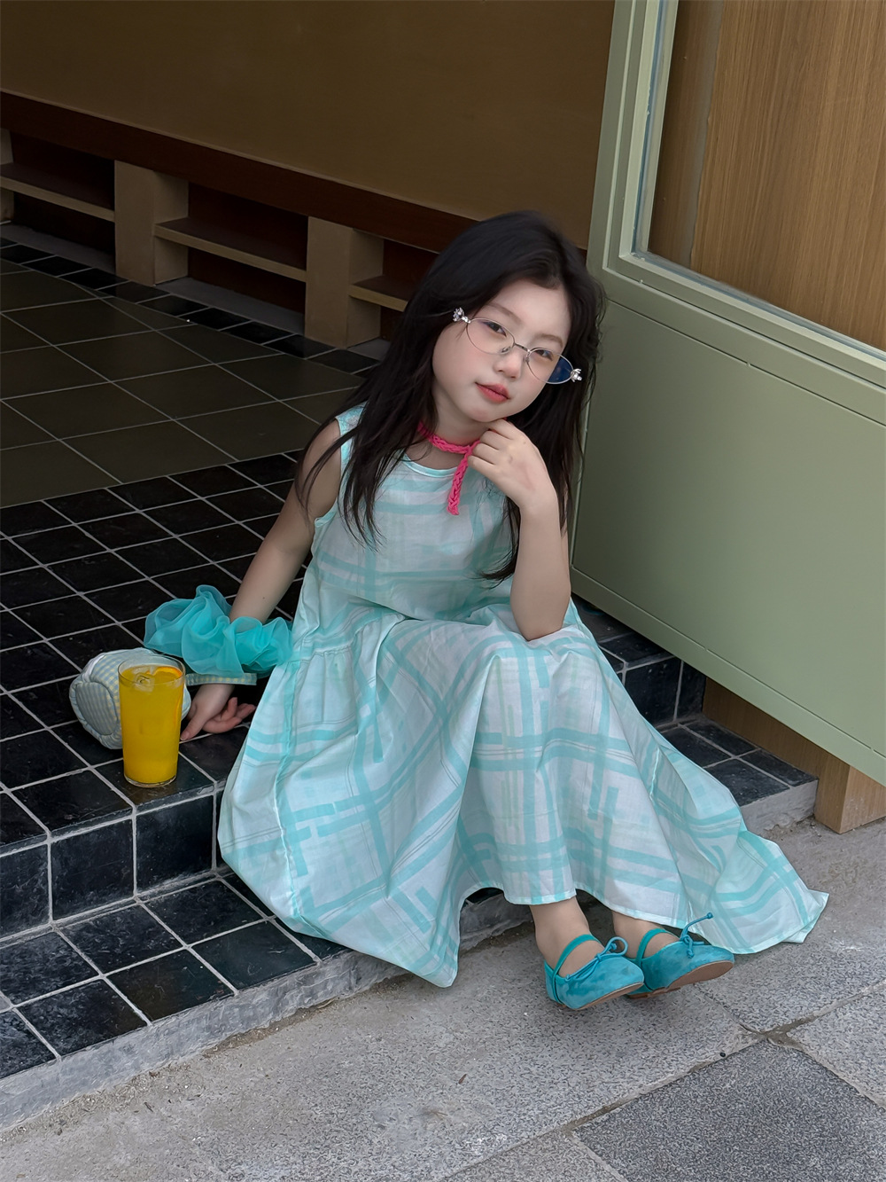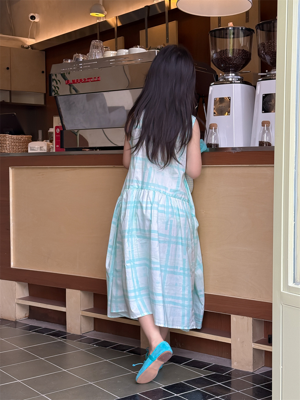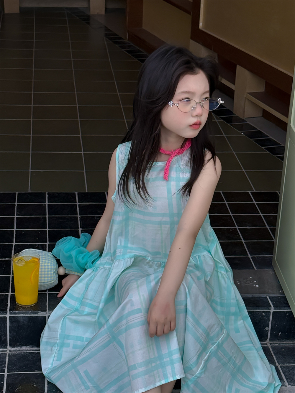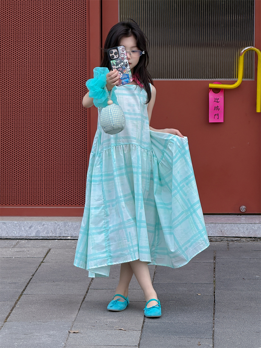 꽃과 추구 어린이 의류 소녀 2025 원피스 여름 새로운 격자 무늬 공주 원피스 어린이 유행 치마스토어 가기