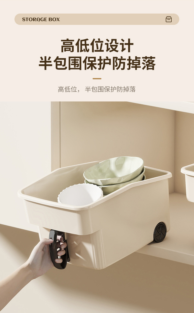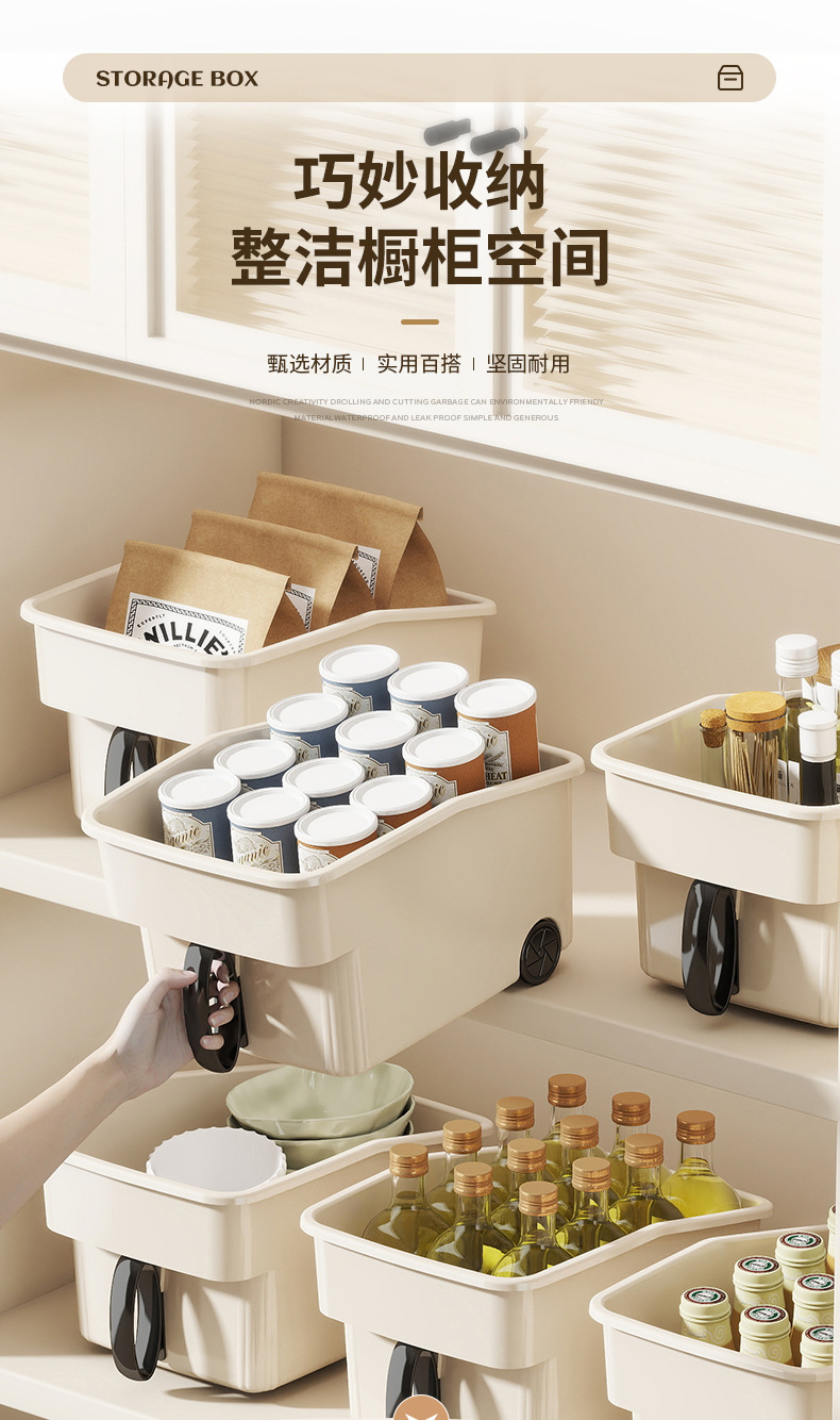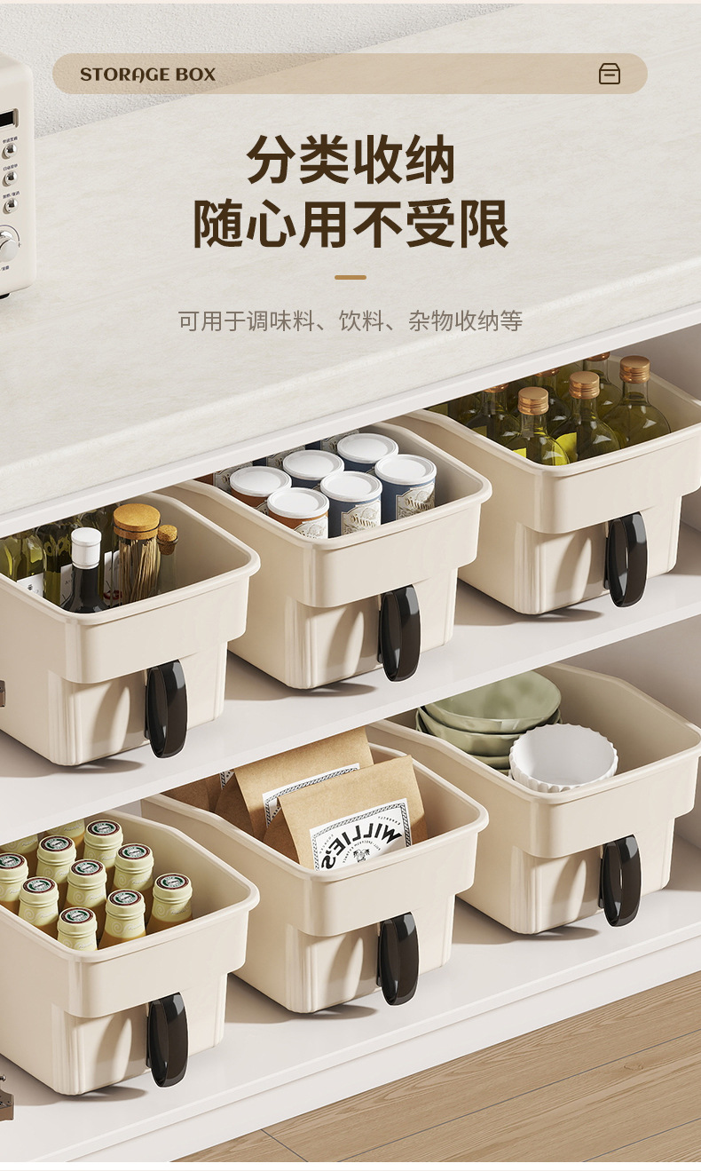 • [손잡이 포함-수납장 정리함] 크림색 1팩