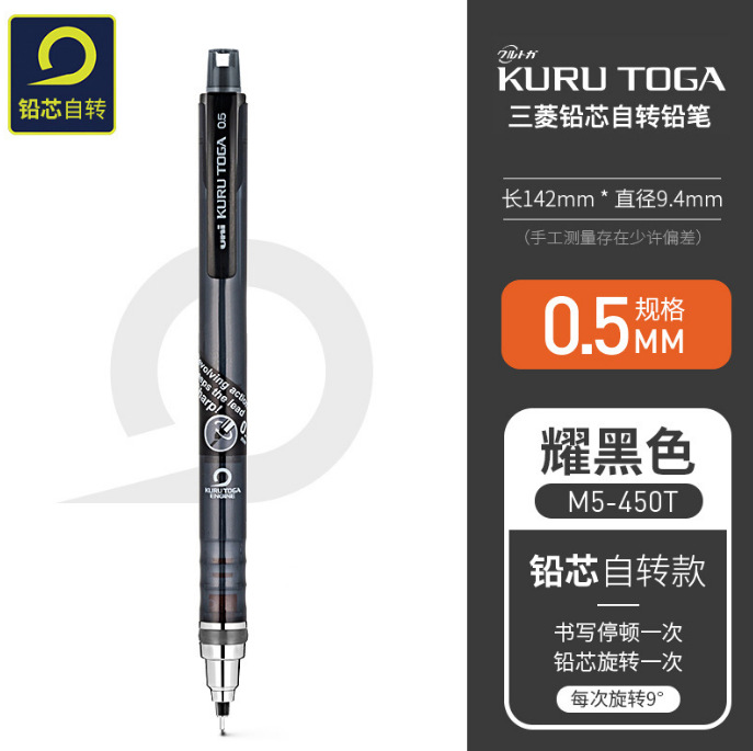 일본 미쓰비시 자동 연필 M5-450T 단일 속도 블랙 기술 회전 연필 연속 리드 0.5mm 연필