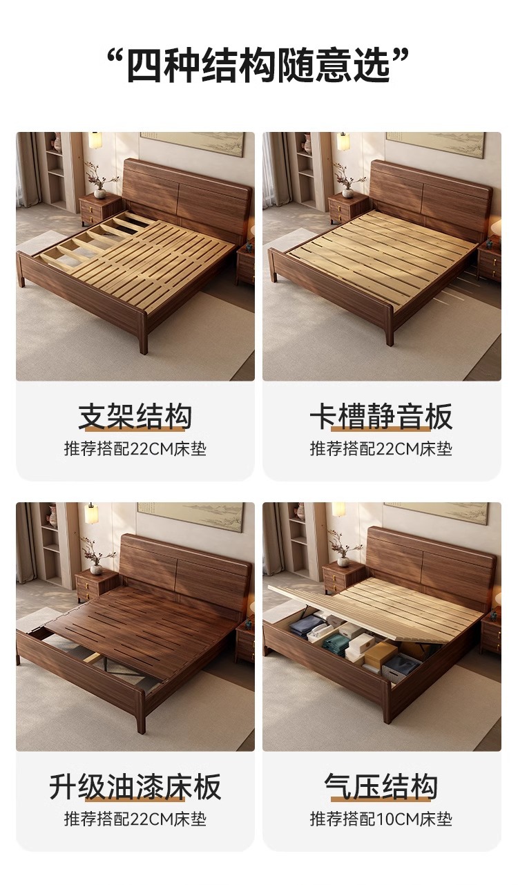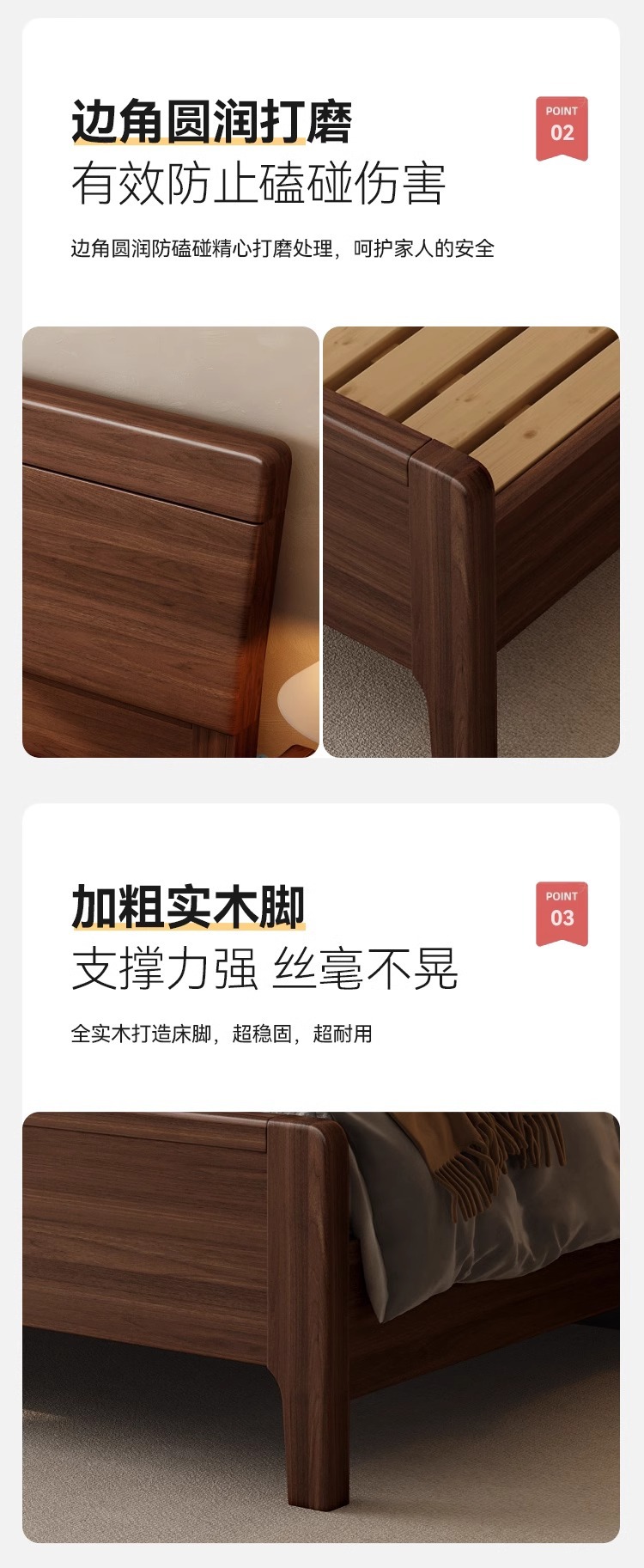 • 블랙 월넛 침대 + 소나무 사일런트 침대 보드